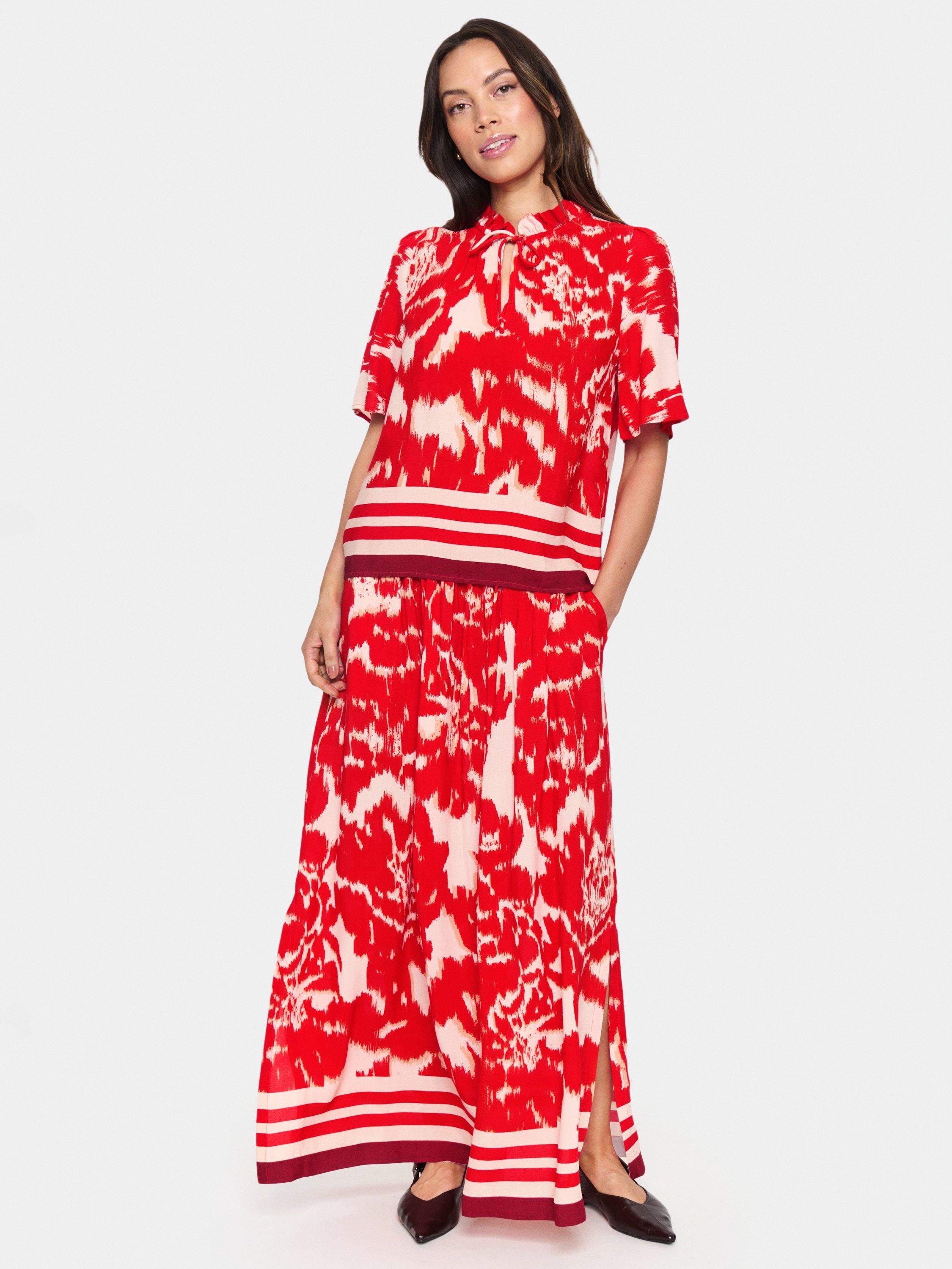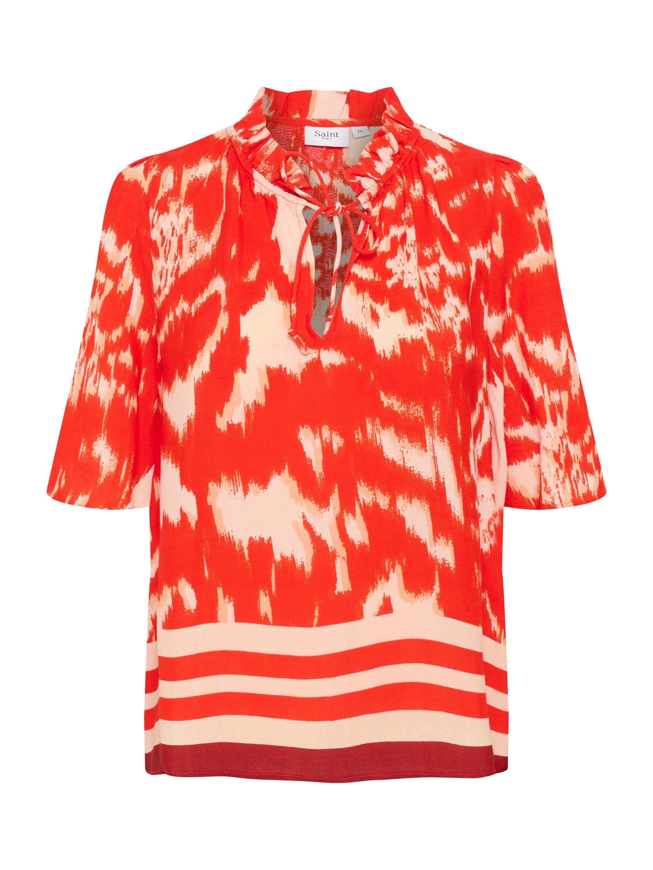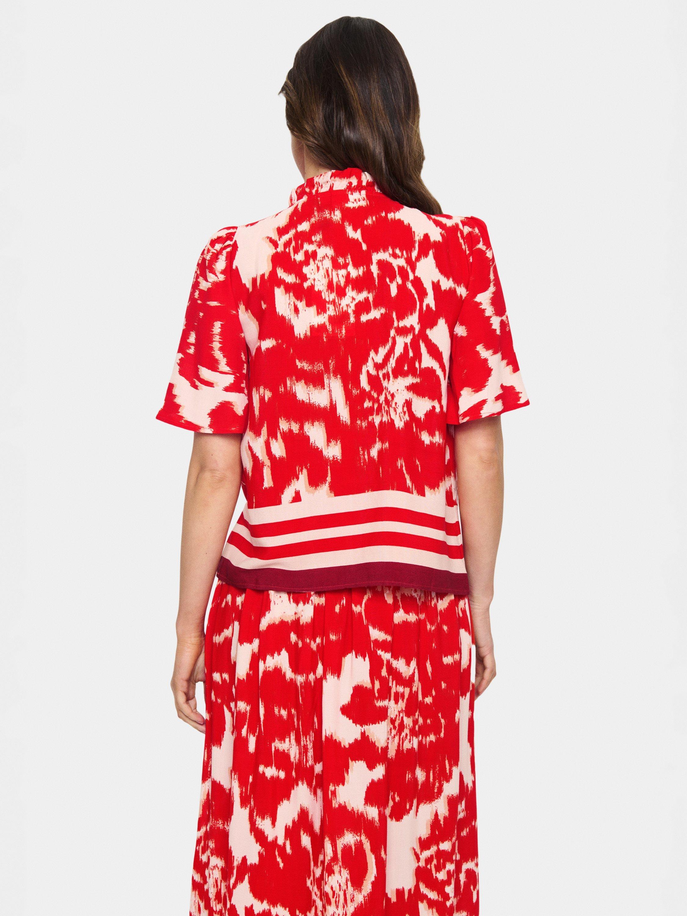 An effortless choice, this blouse from Saint Tropez adds the perfect pop of color to any outfit with its bold Poinciana Water Blooms pattern. Cut with a high neck and short sleeves, it is made with light yet robust fabric for longevity of wear.