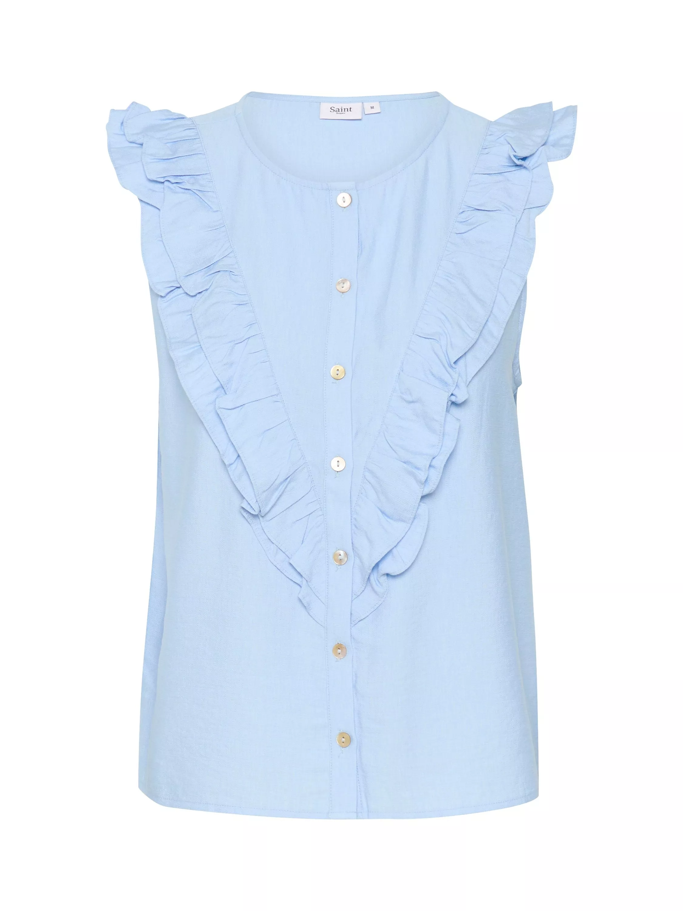 An effortless choice, this ruffle shirt from Saint Tropez makes for the perfect companion to patterned separates.