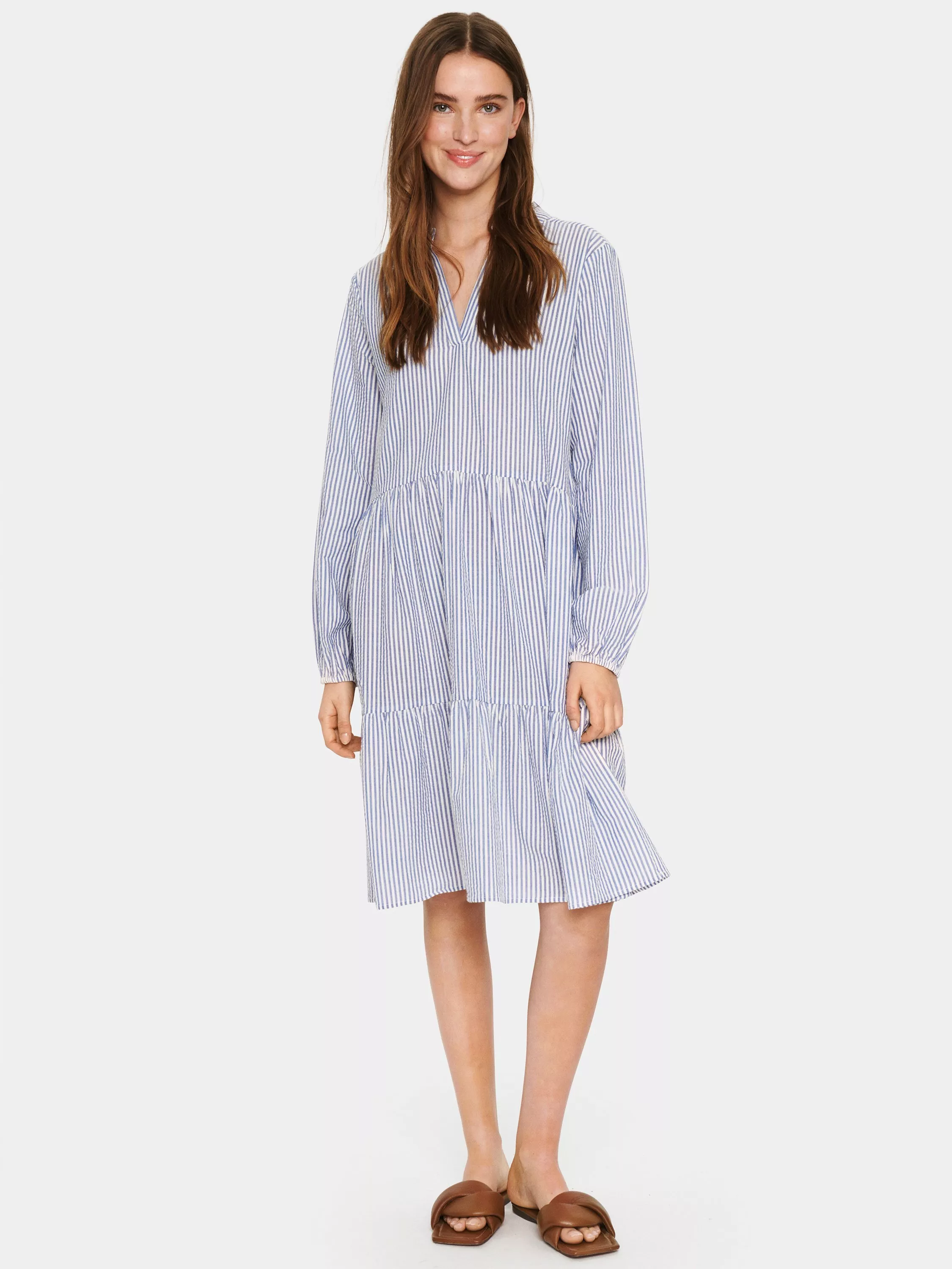 Cut to drop into a tiered silhouette, this knee length dress from Saint Tropez is crafted from soft and durable cotton. With a fuss-free but smart v-neckline and full-length sleeves, this style is visually elevated with striping.