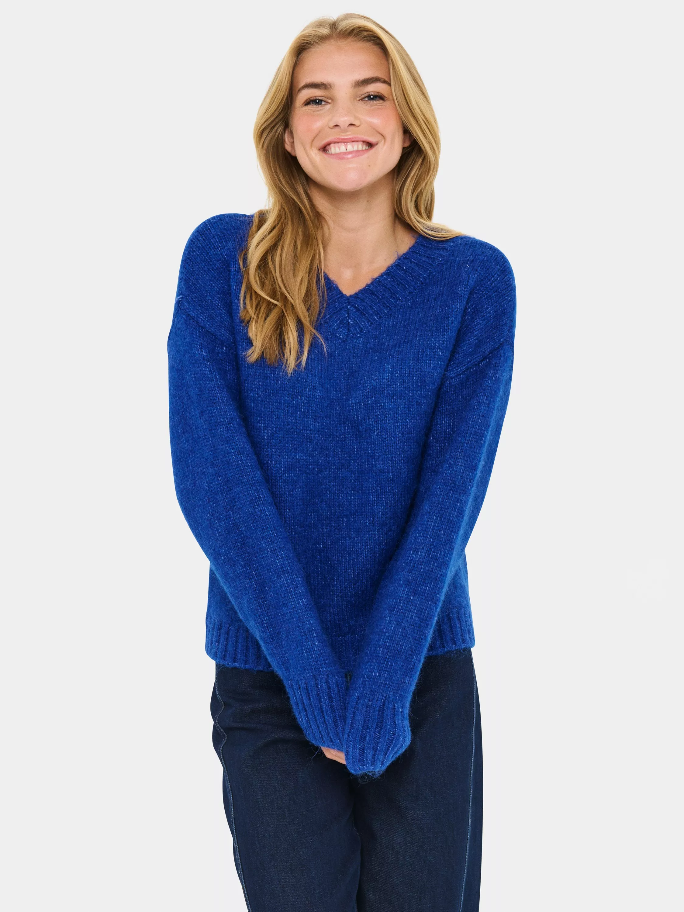 Saint TropezMaisalia V-Neck Jumper, Mid Blue