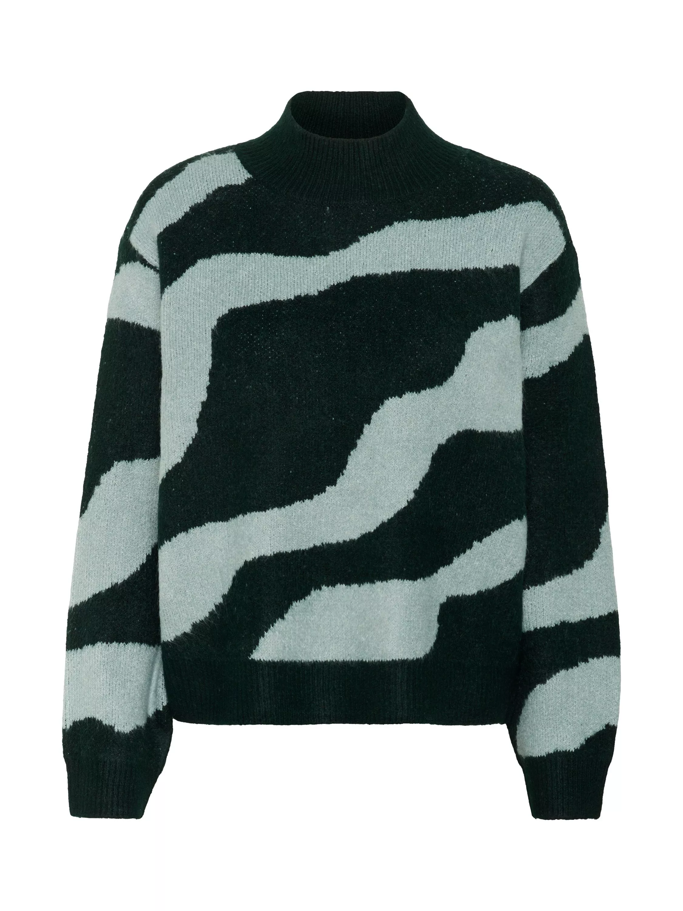 This medium knit jumper wraps you in comfort with a unique abstract pattern and a high neckline for added style. Its clever design ensures you look sharp while staying cosy.