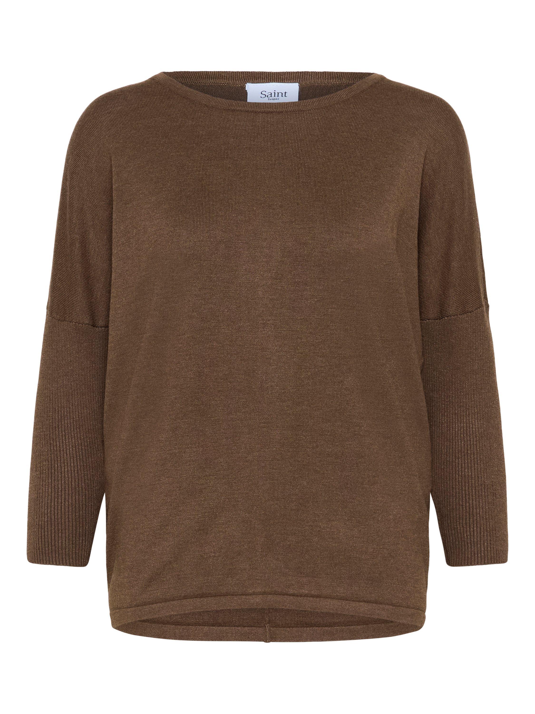 The Mila pullover is a casual and comfortable everyday top with a crew neck. It has batwing sleeves with 3/4 length sleeves, that is made in a knitted rib fabric. The pullover has a tapered hemline, and the hem and the batwing sleeves gives it a loose and relaxed fit.