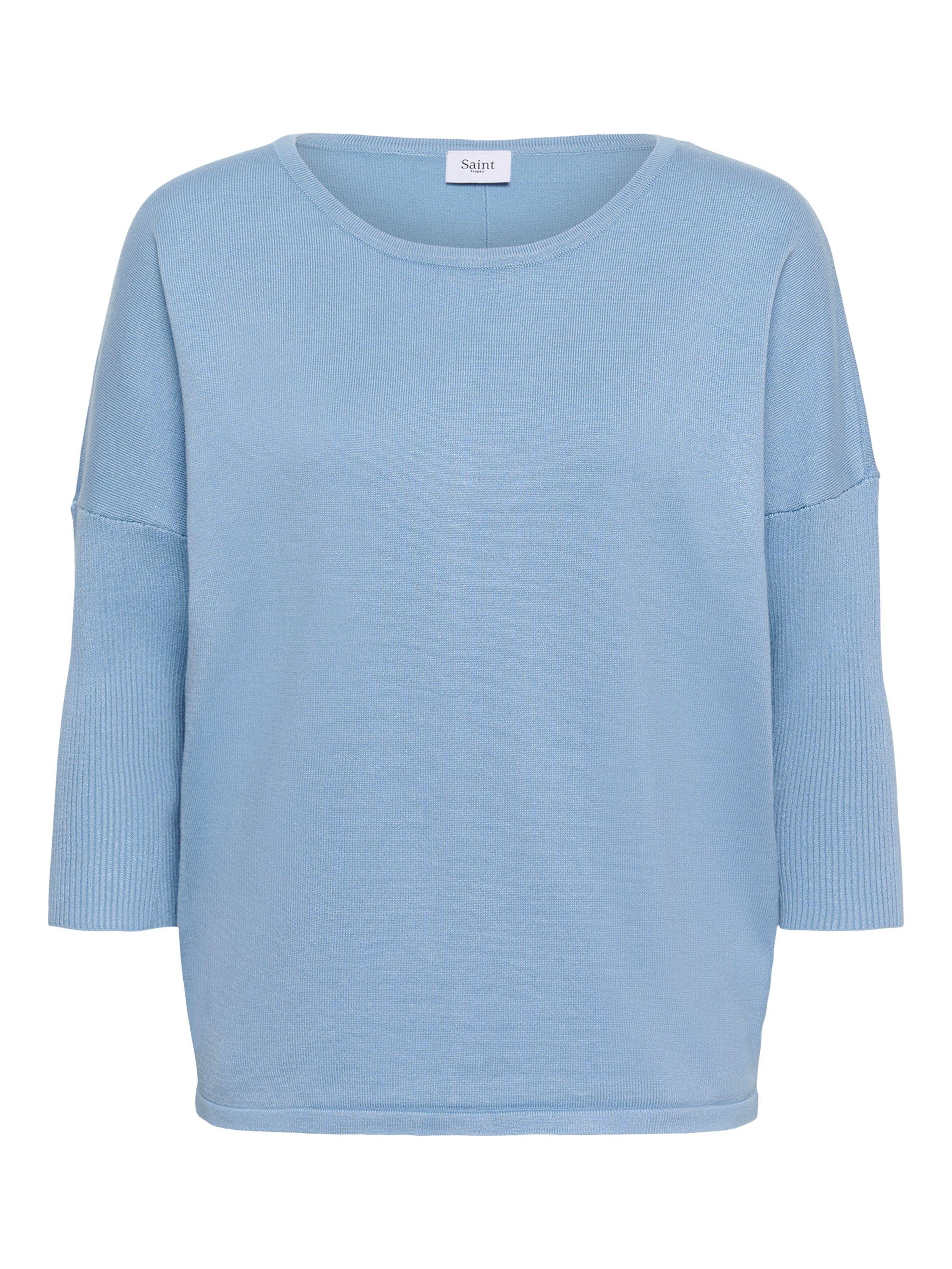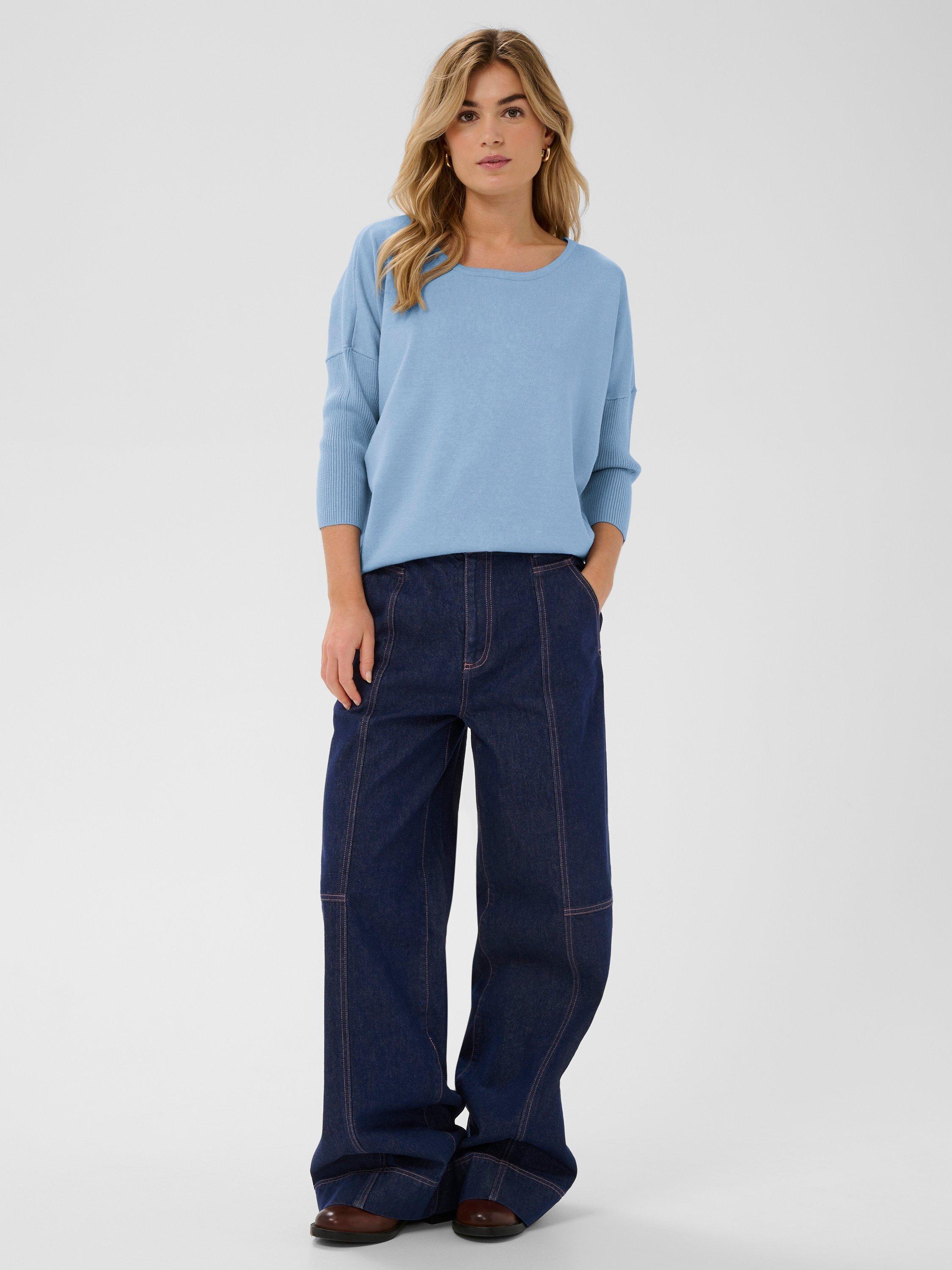 The Mila jumper is a casual and comfortable everyday top with a round neck. It has batwing sleeves with 3/4 length sleeves, that is made in a knitted rib fabric. The pullover has a tapered hemline, and the hem and the batwing sleeves gives it a loose and relaxed fit.