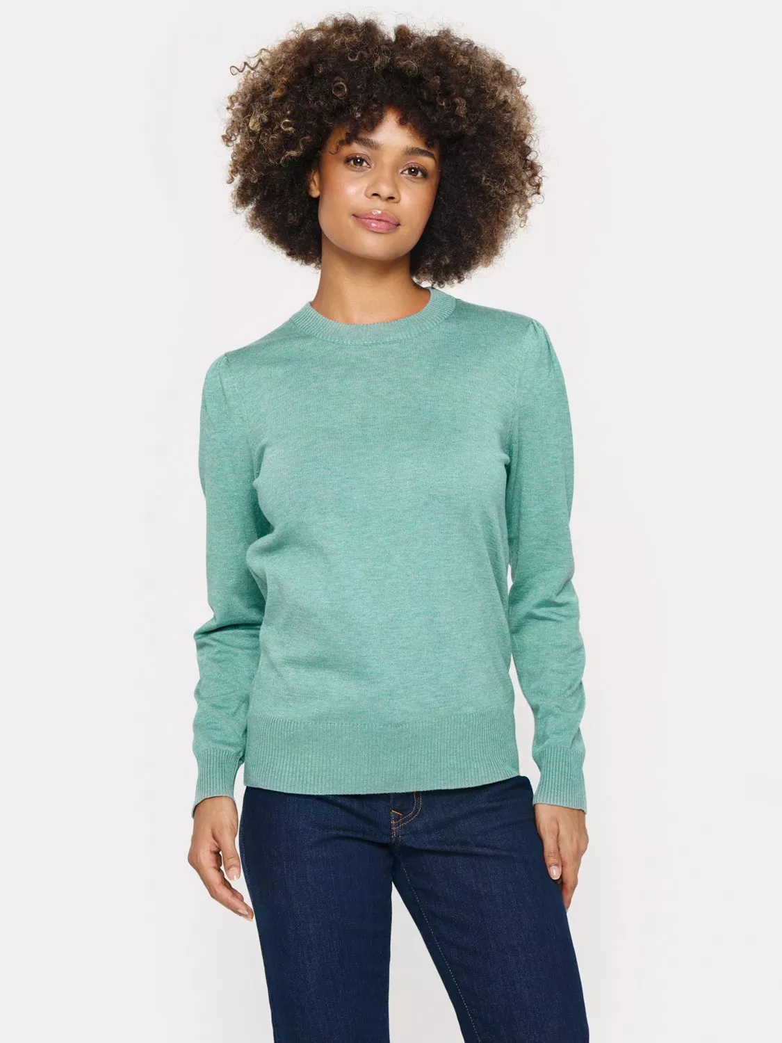 The Mila pullover is a simple and comfortable top, and the perfect basic item to add to your everyday wardrobe. It has a crew neck with a knitted rib edge and the pullover has a regular fit. It has long sleeves and is cut at the hips, and at the hem and sleeve edges it has a wide knitted rib edge.