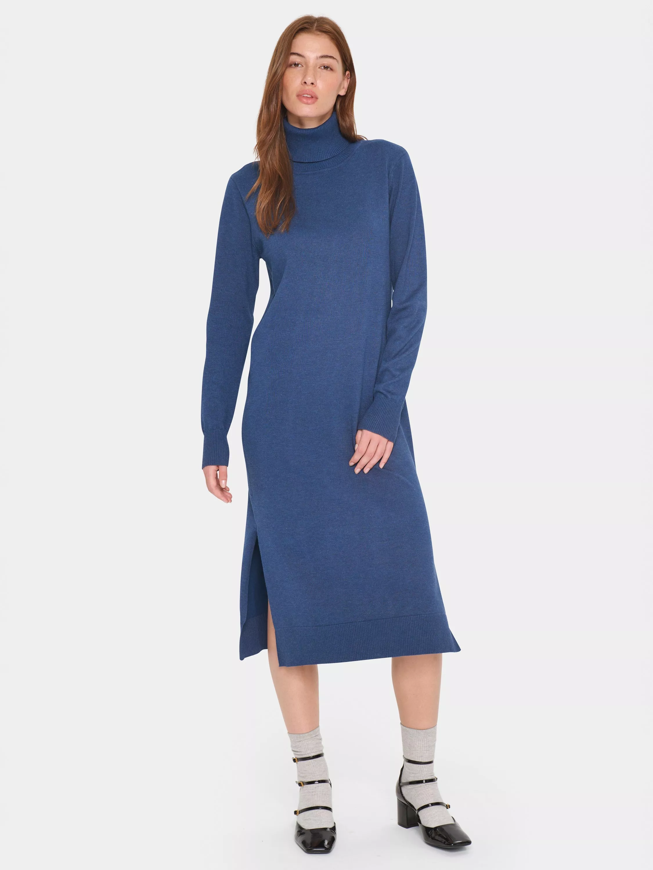 The Mila midi dress is a cosy everyday dress, made in a soft knitted fabric with a relaxed fit. The dress has long sleeves that comes down to the knuckles, and it has a high rollneck. It is cut at the mid-calves and has a low slit on both sides.