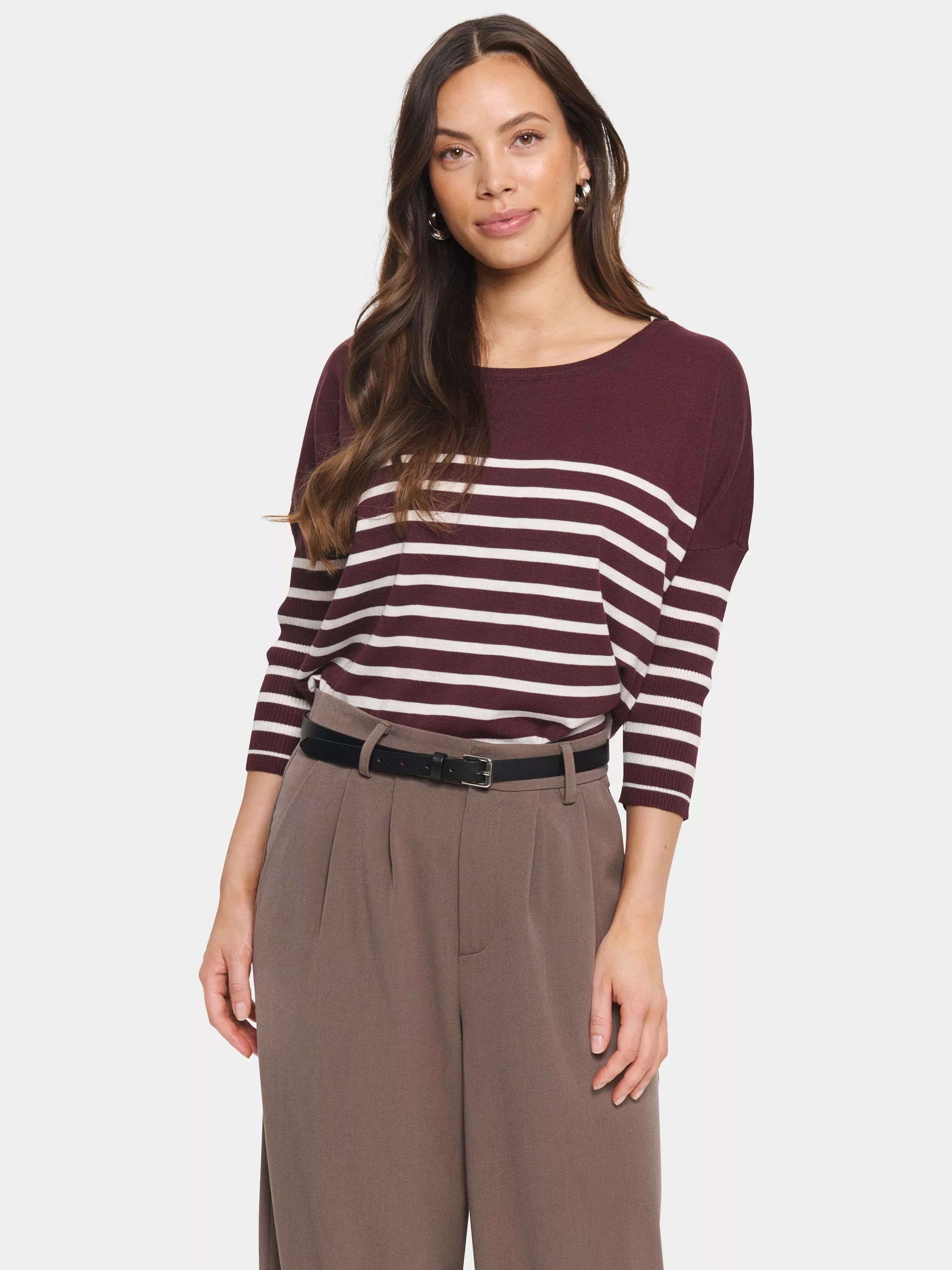 With a fuss-free round neck and three quarter length dropped sleeves, this casual fit stripe top from Saint Tropez is a go-to as the temperature cools.