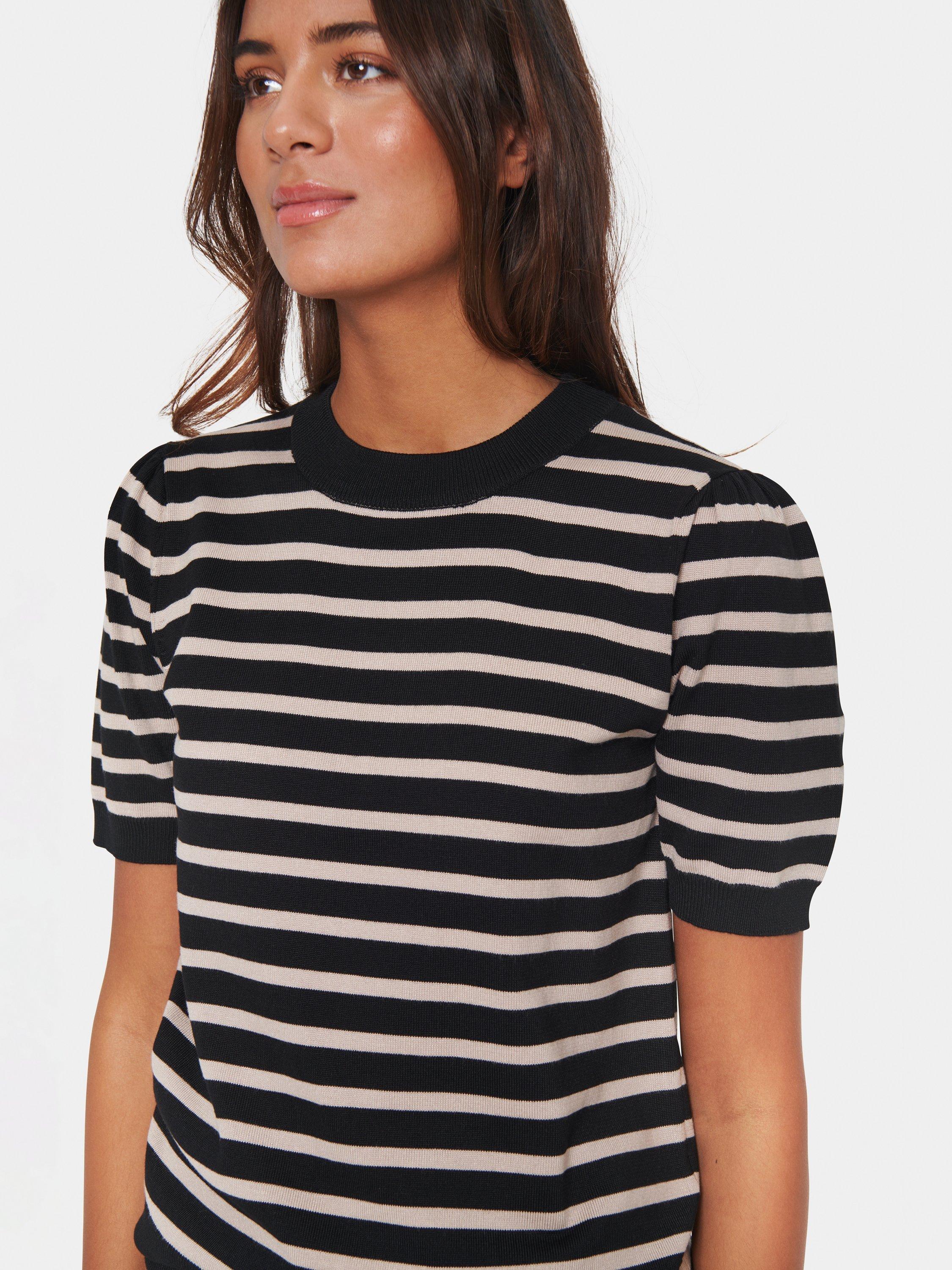Stay stylish with Saint Tropez's knitted pullover. It showcases a regular fit design, perfect for laid-back days and light, short sleeves for optimal ease during warmer weather. Crafted principally from viscose with a hint of polyamide for longevity.