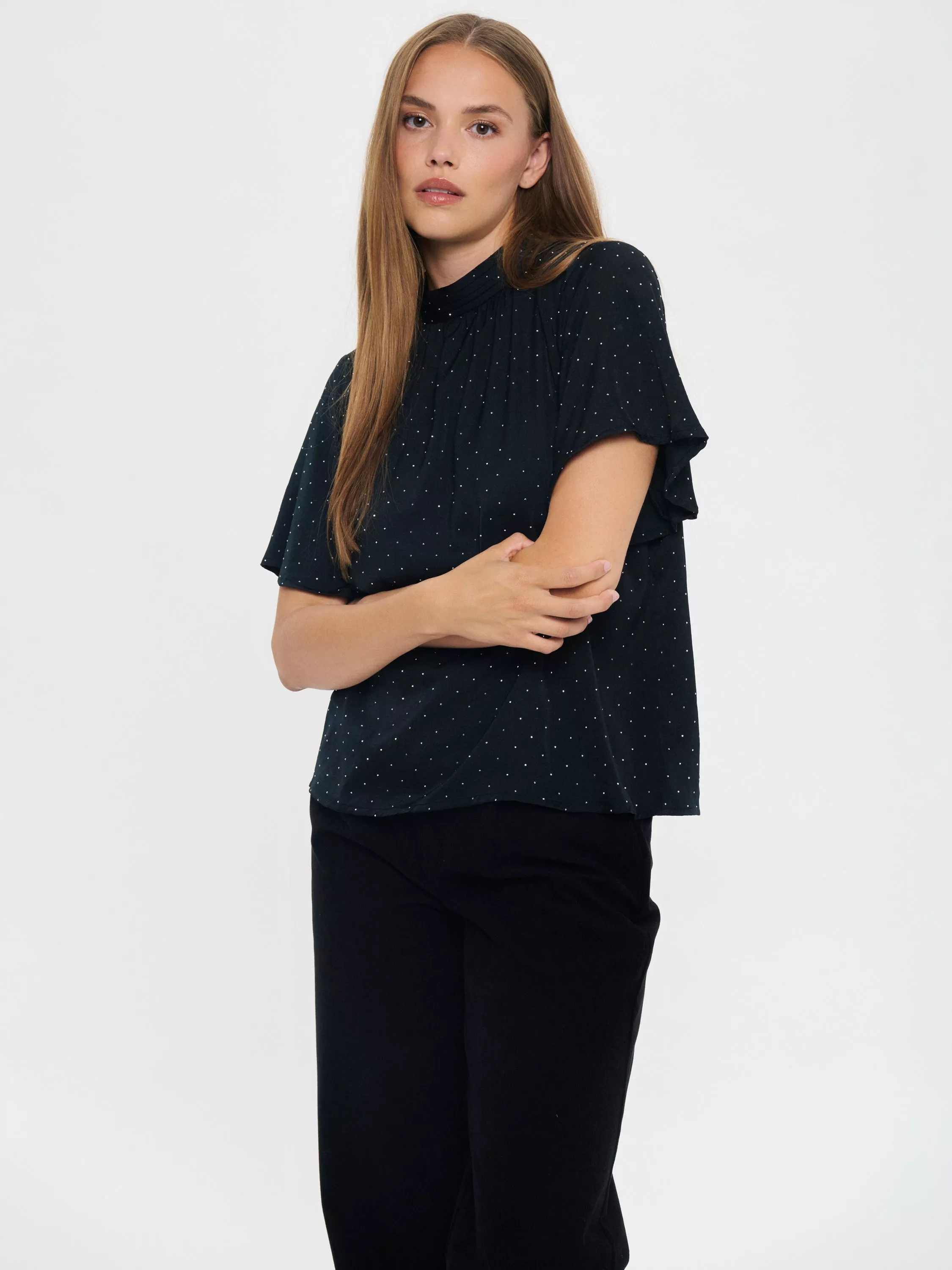 A blouse by Saint Tropez. Featuring a high neck and short sleeves, it's designed in a playful and timeless polka dot print. The ultimate party-ready piece.