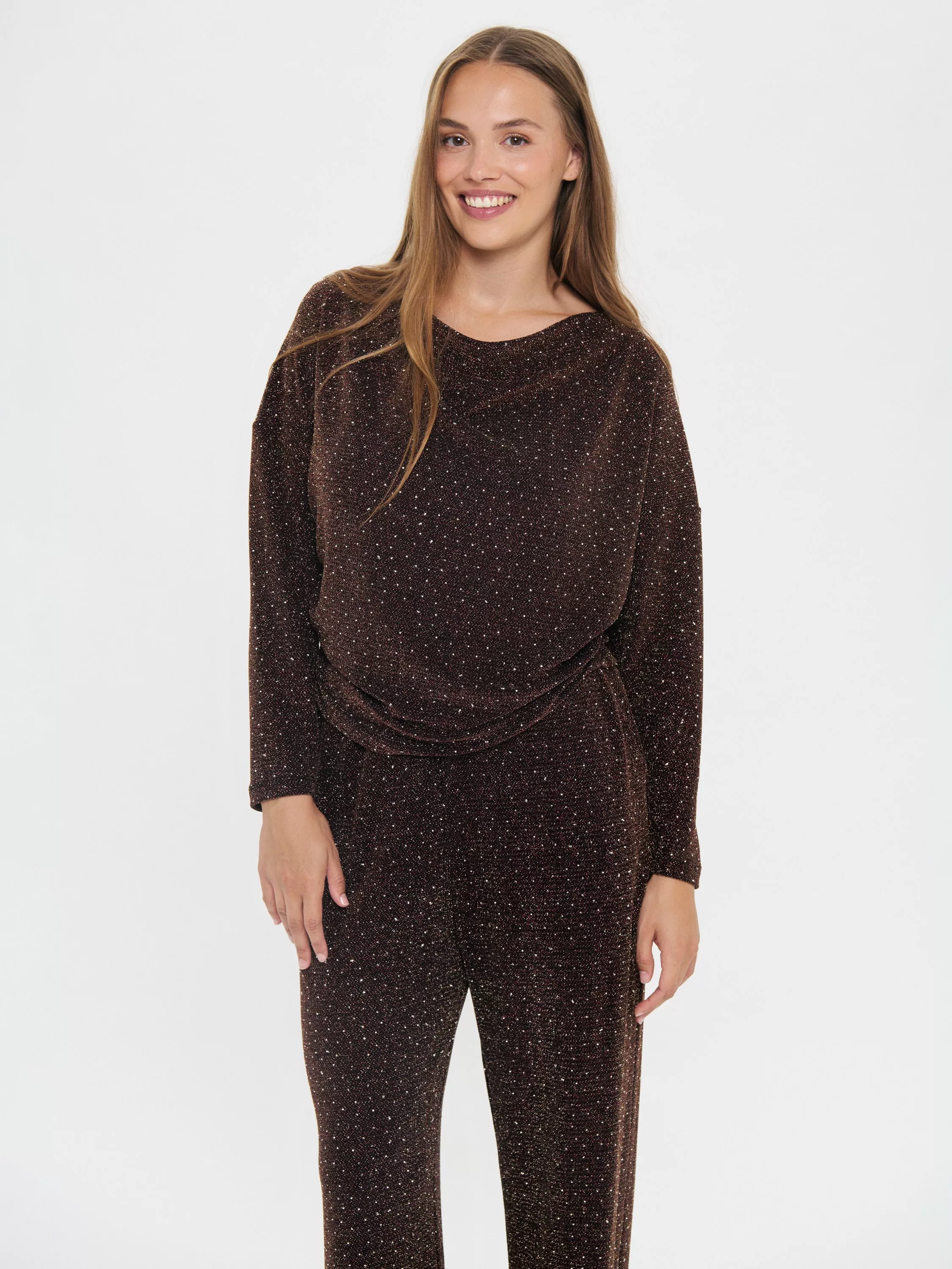 Framed with a boat neckline, this top from Saint Tropez is made to shimmer with its metallic effect.