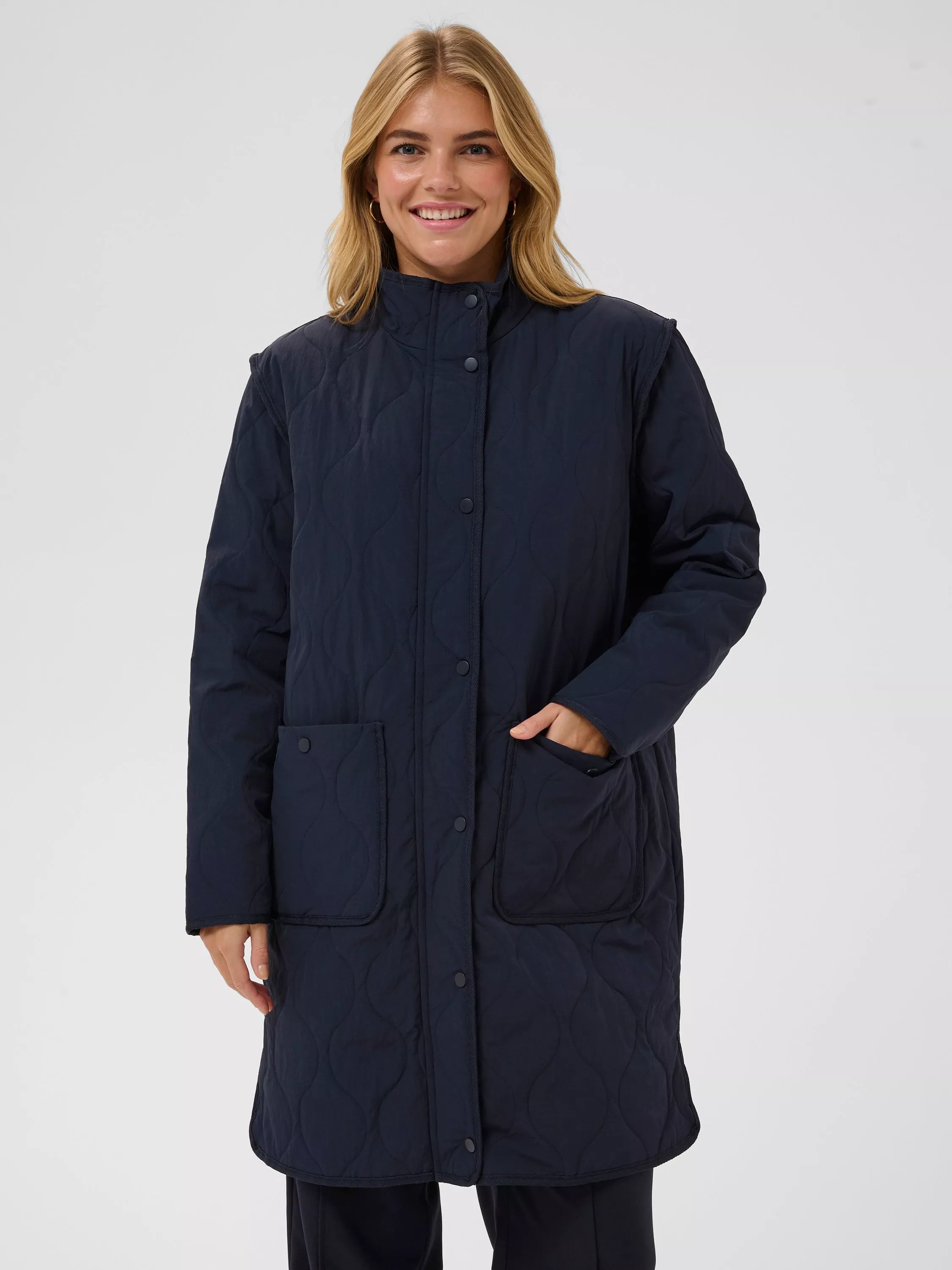 This quilted longline jacket keeps you warm and ready for anything. Its high neck, regular cut and oversized patch pockets offer comfort, great for keeping out the chill in cooler weather.