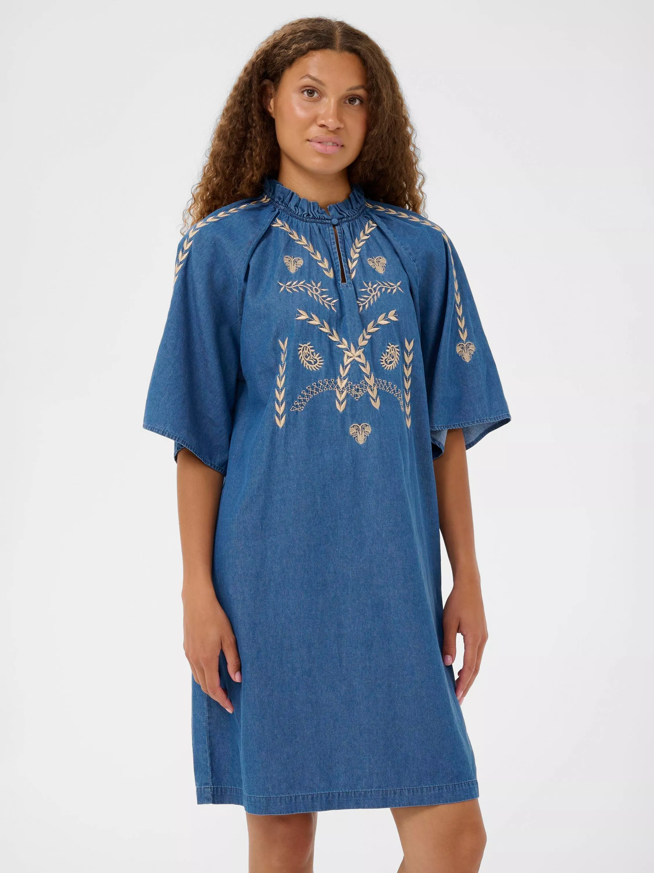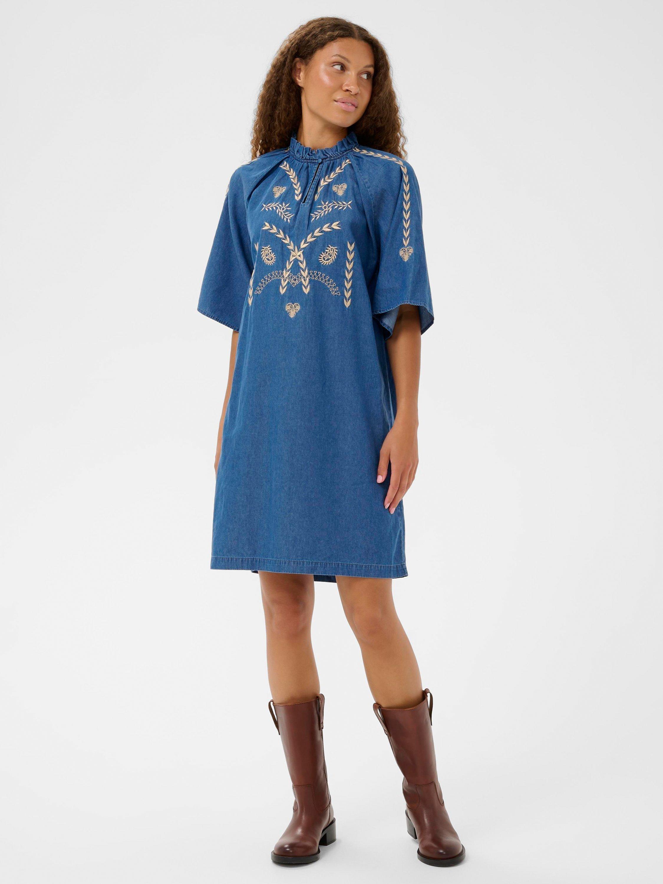 This Saint Tropez mini smock dress is made in soft cotton denim with playful embroidery, short sleeves, and a high neck. Perfect for adding interest to your day, it has comfort and style taken care of.