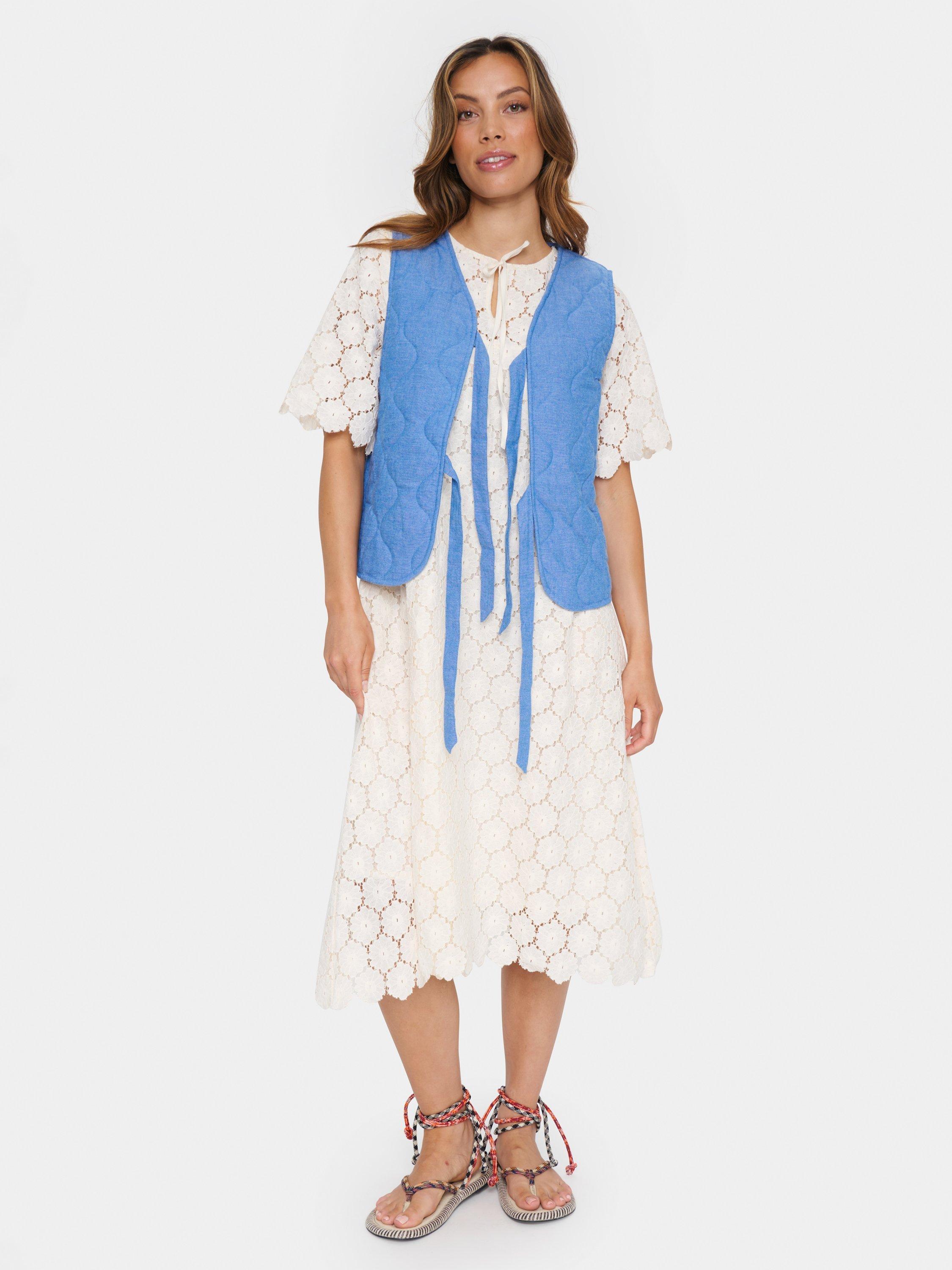 Saint TropezQuilted Tie Front Waistcoat, Blue