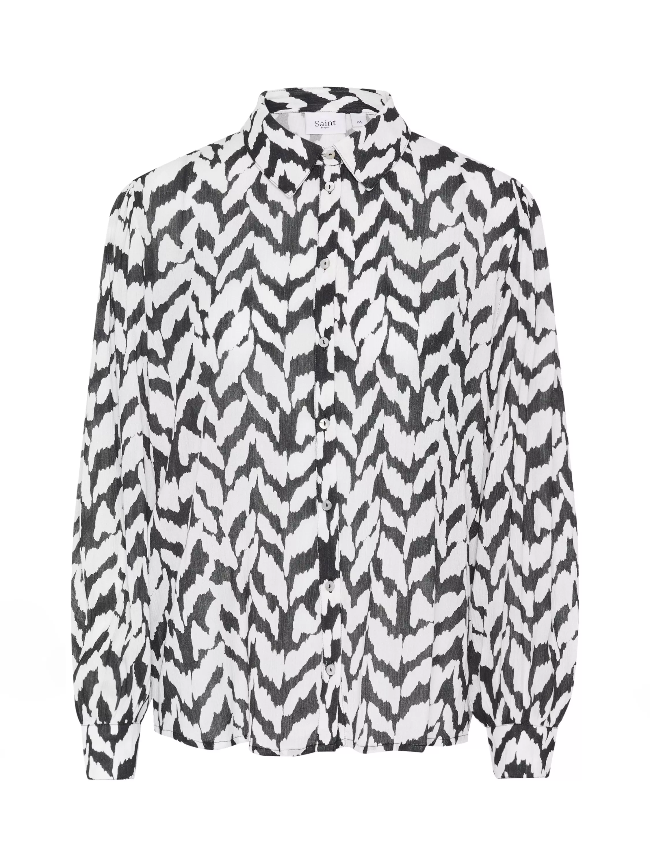 Bringing a neat addition to your wardrobe, this blouse from Saint Tropez will give your look a statement edge thanks to its monochrome strokes print. Designed with a crisp collar neckline and long sleeves, it is made from a light yet durable fabric.