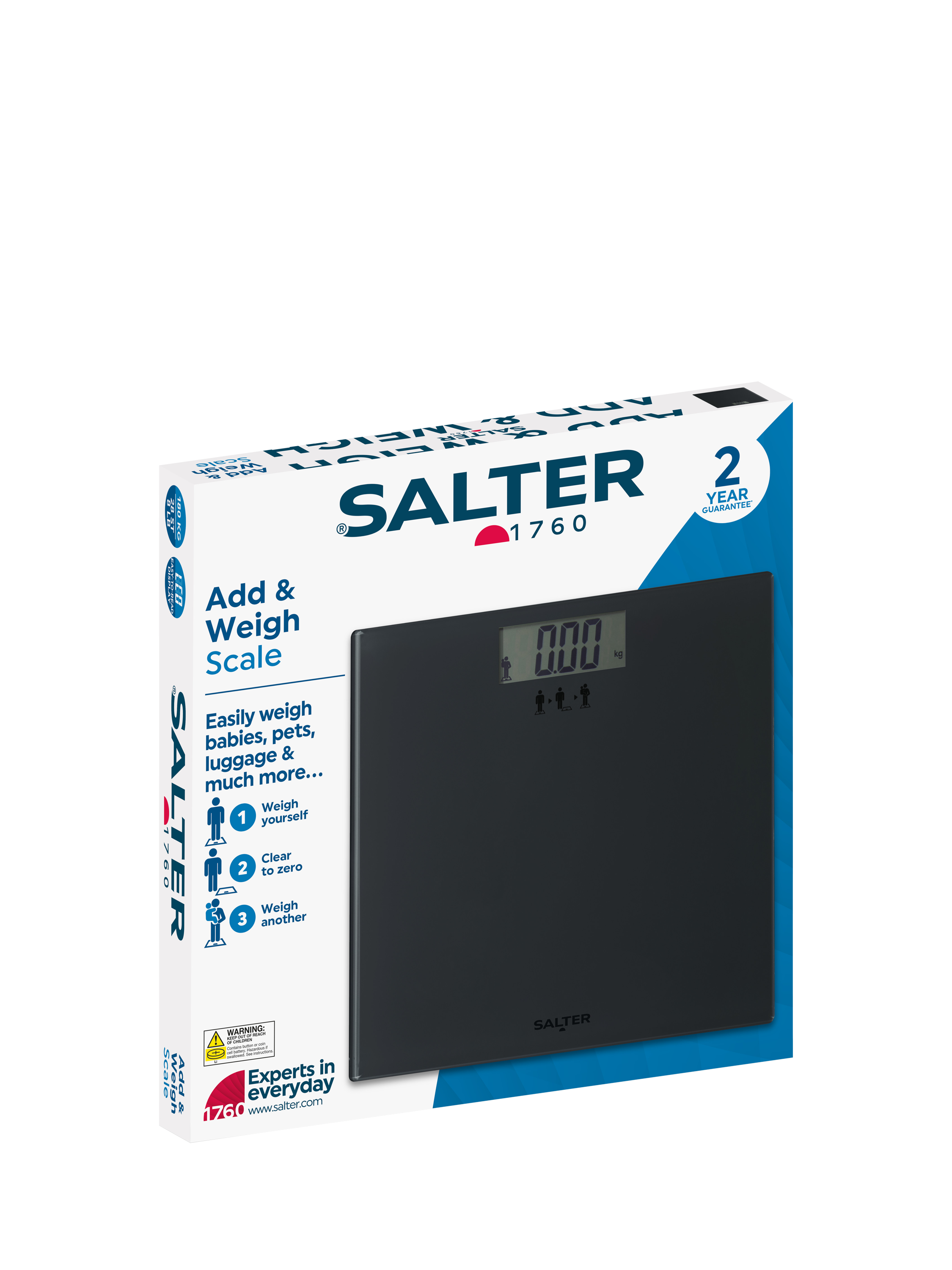 Easily weigh yourself as well as children, pets, luggage and more with this Add and Weigh scale from Salter. Simply weigh yourself, clear the scale to zero, then hold what you want to weigh before stepping on again to accurately measure.