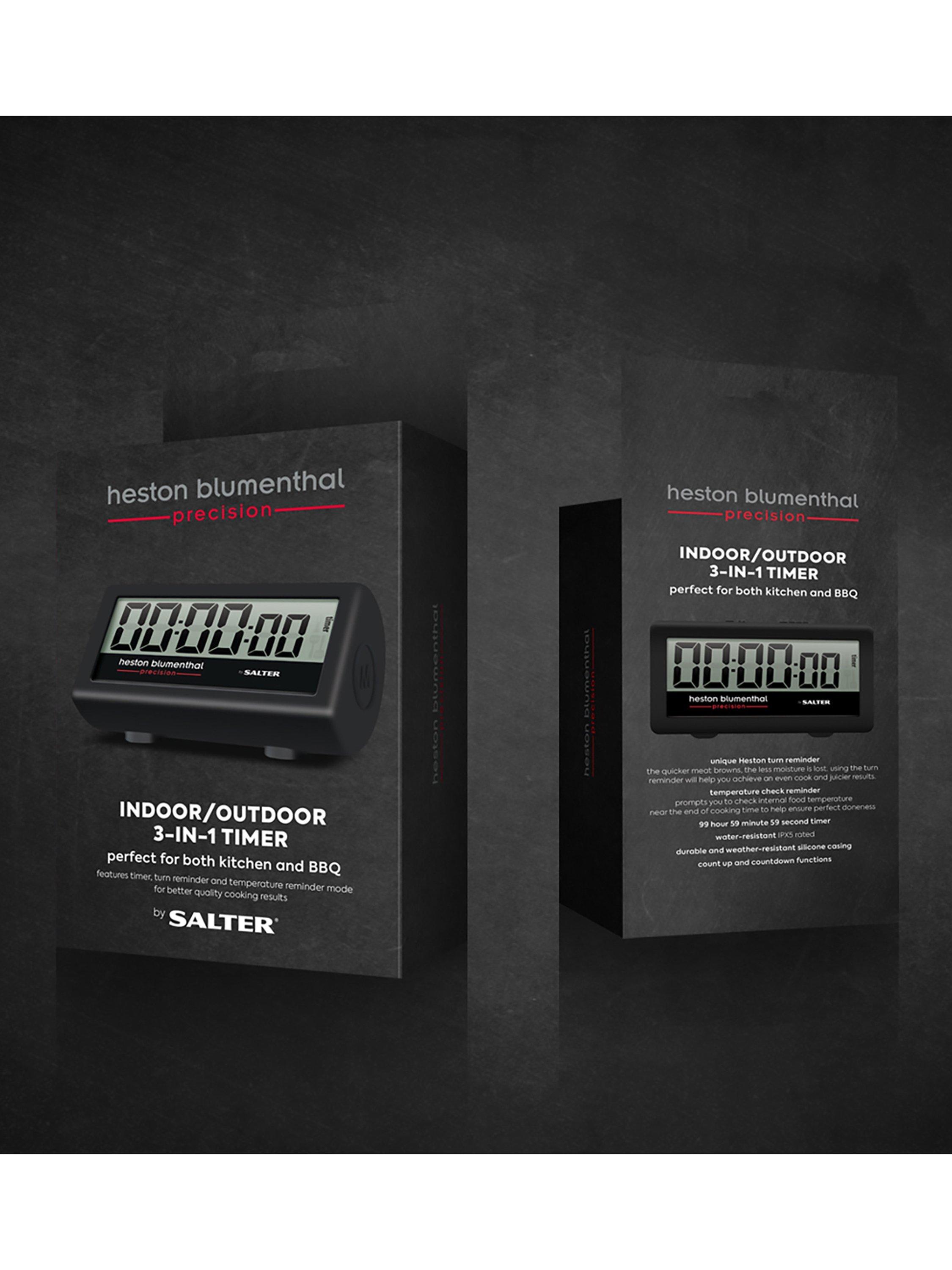 Featuring a timer, turn reminder and temperature reminder mode, this 3-in-1 kitchen and barbecue timer from Heston Blumenthal Precision by Salter is ideal for indoor and outdoor cooking.