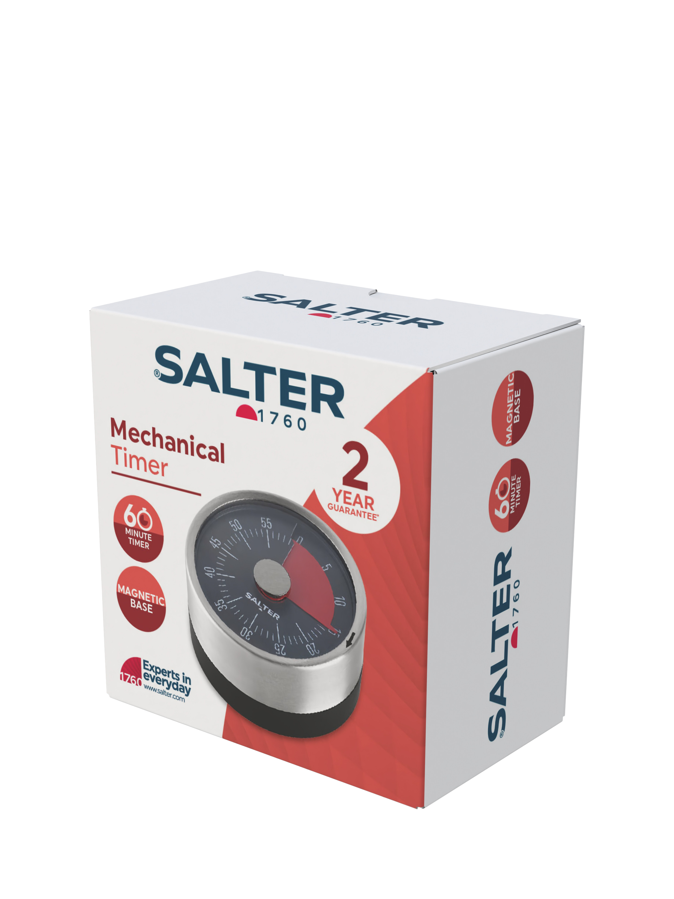 The Salter Magnetic Mechanical Timer is your reliable kitchen companion with a classic clockwork mechanism that requires no batteries. It's easy-to-read countdown markers ensure precise timing up to 60 minutes.