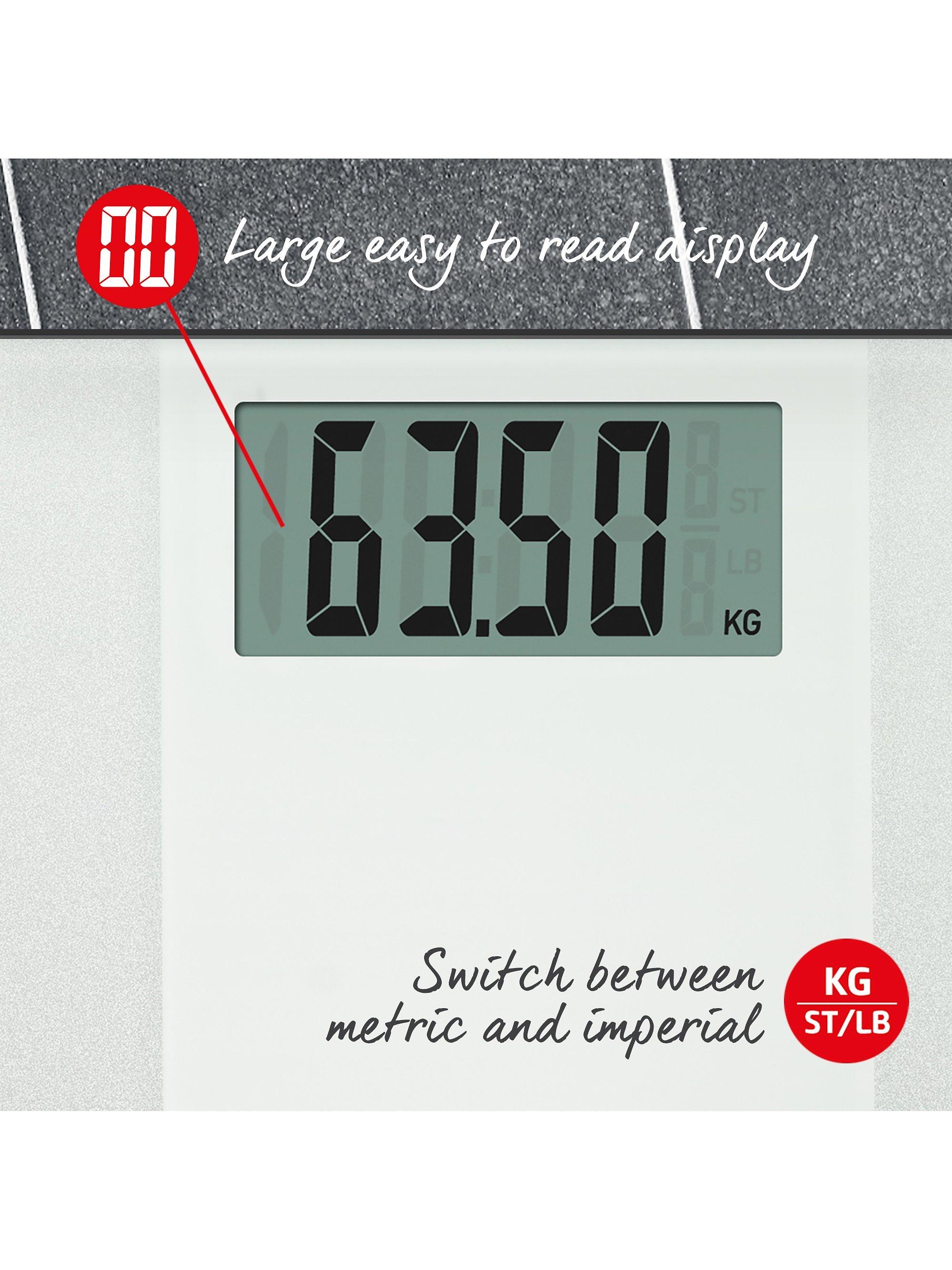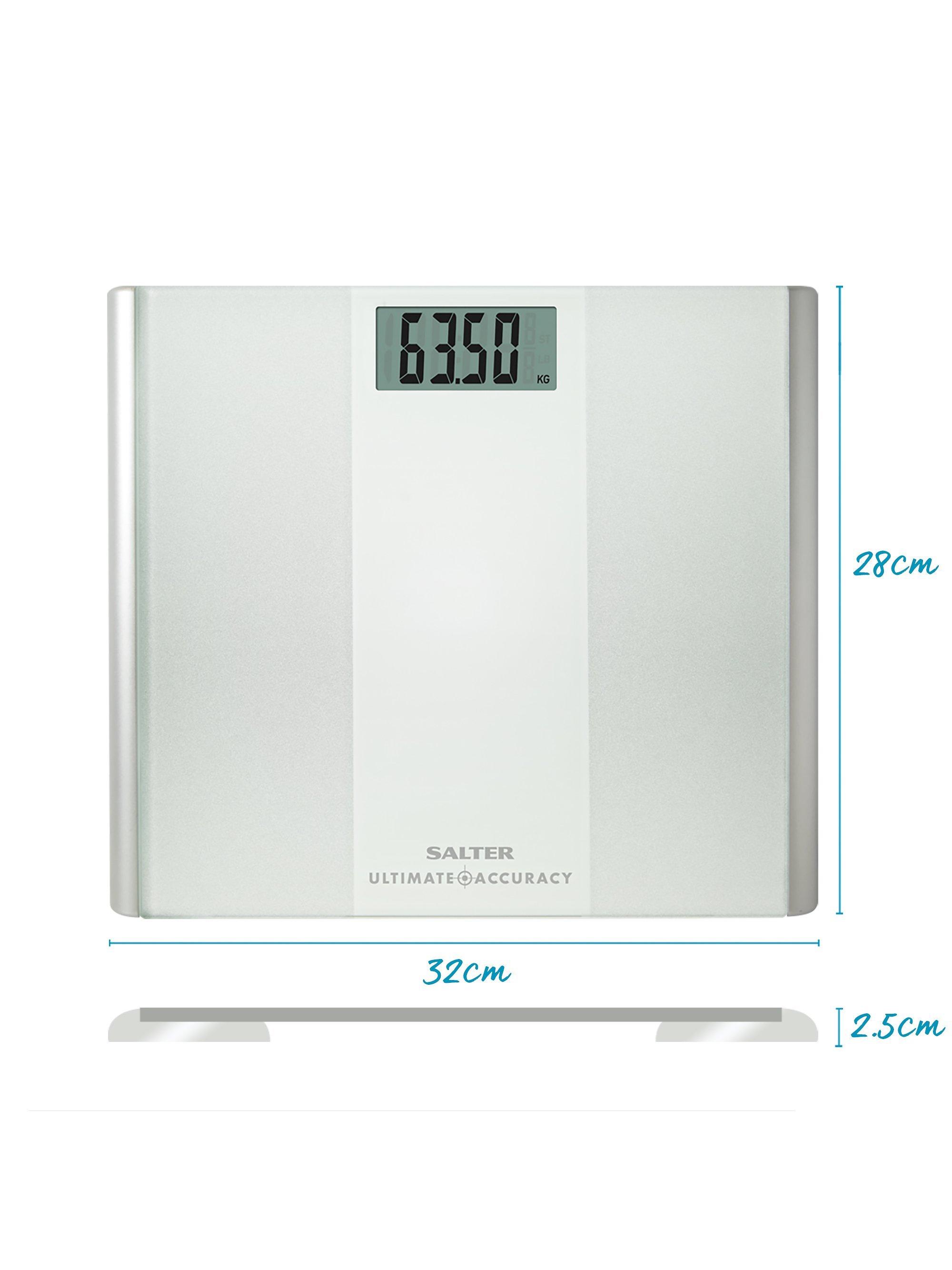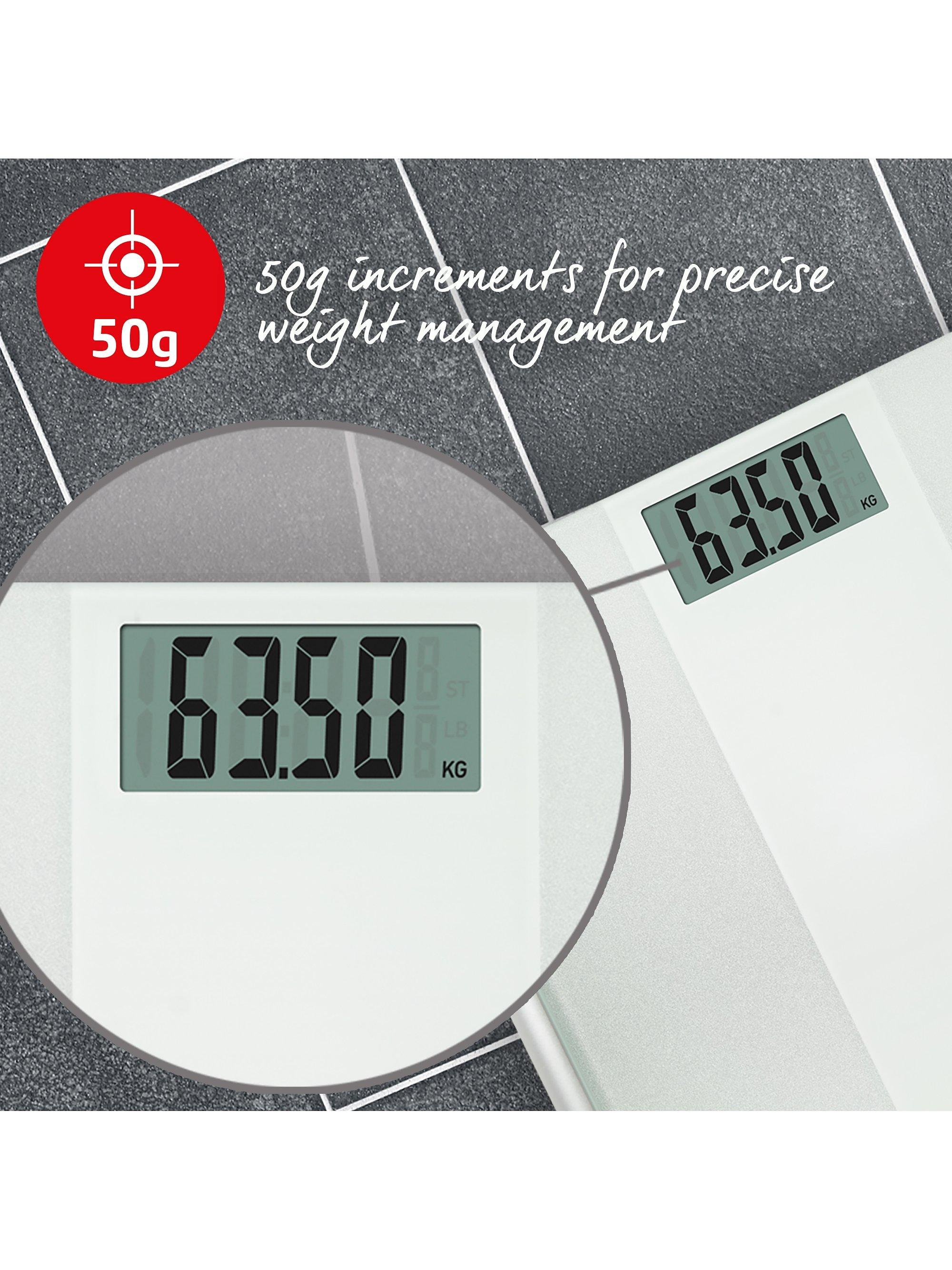 Salter's Ultimate Accuracy bathroom scale give you weight readings in both kilograms or stones, with increments of just 50g so you get a particularly precise reading.
