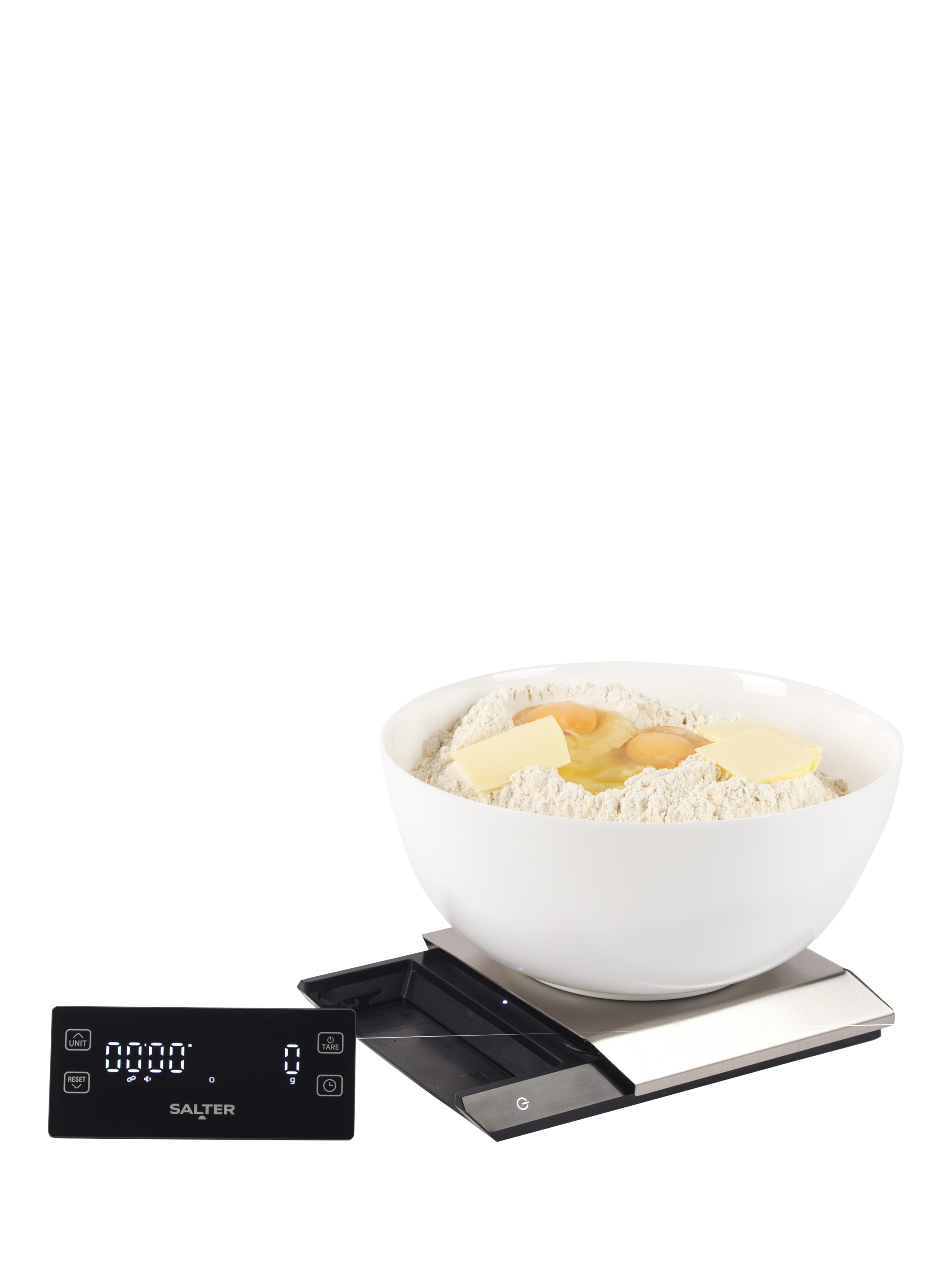 Your kitchen just got smarter with the Salter Wireless Digital Kitchen Scale. Its large, detachable LED display moves wherever you need it, letting you measure bowls, batch cook, or weigh small parcels without bending.