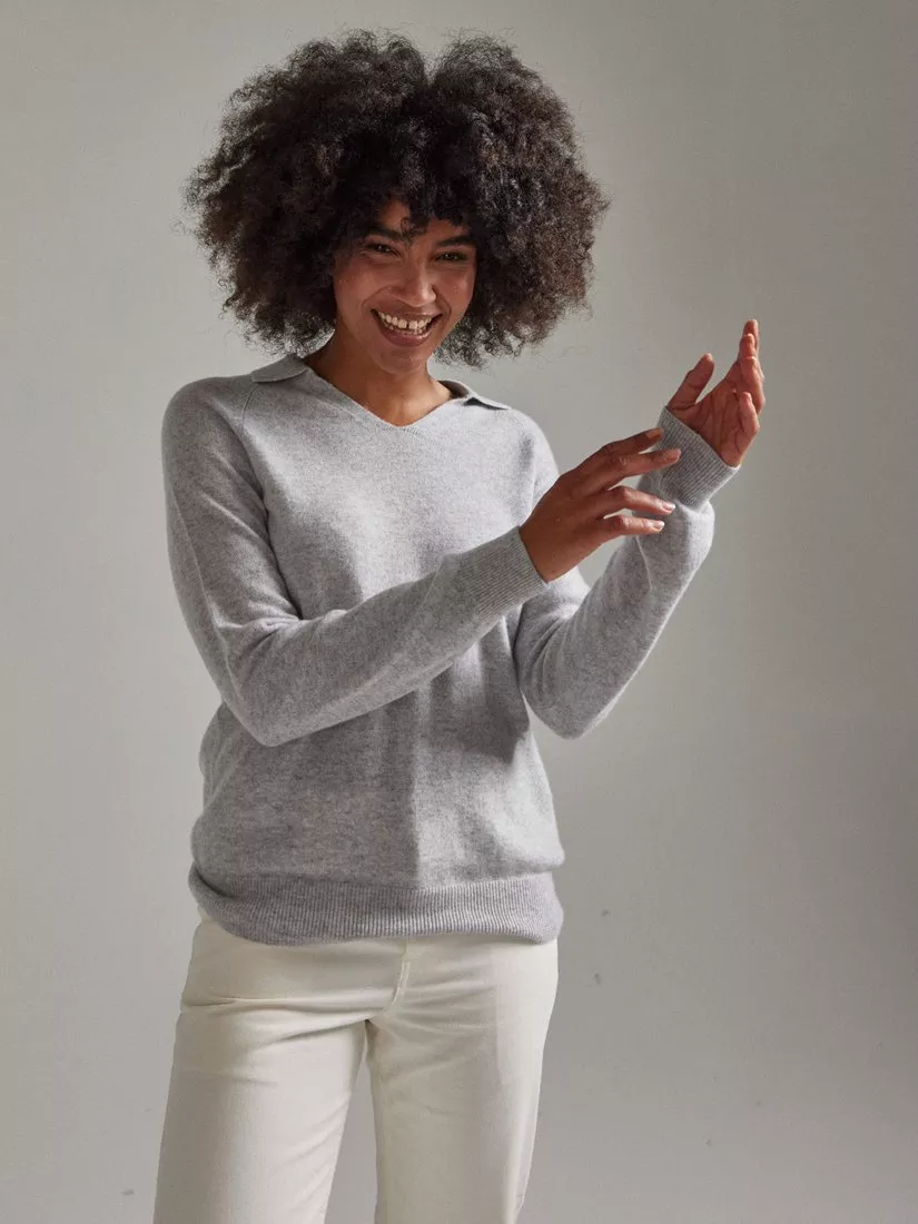 An update on a classic style, the Polo Shirt is re-invented into this collared sweater crafted in a mid-weight cashmere for an elevated sporty vibe. A regular fit with raglan sleeves, delicate fashioning details and finished with rib trims at the cuff and hem. Wear layered or on its own season in and season out.