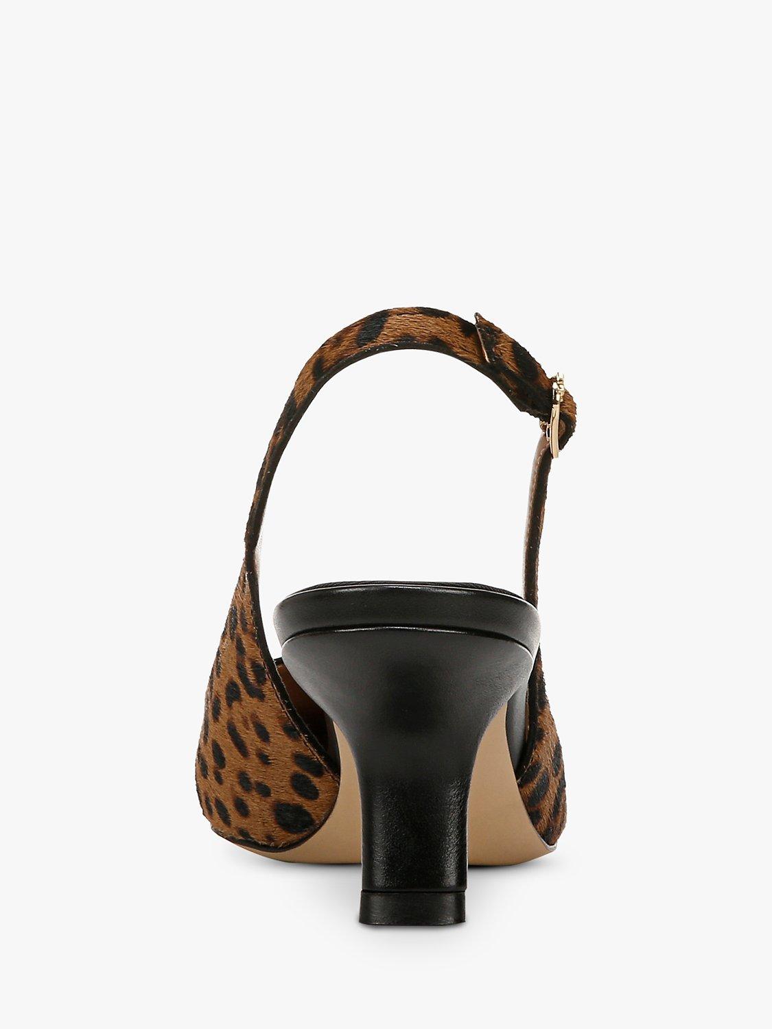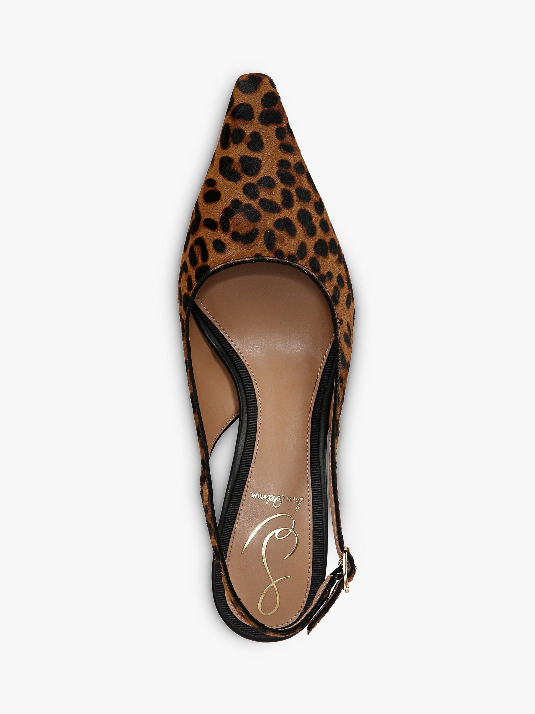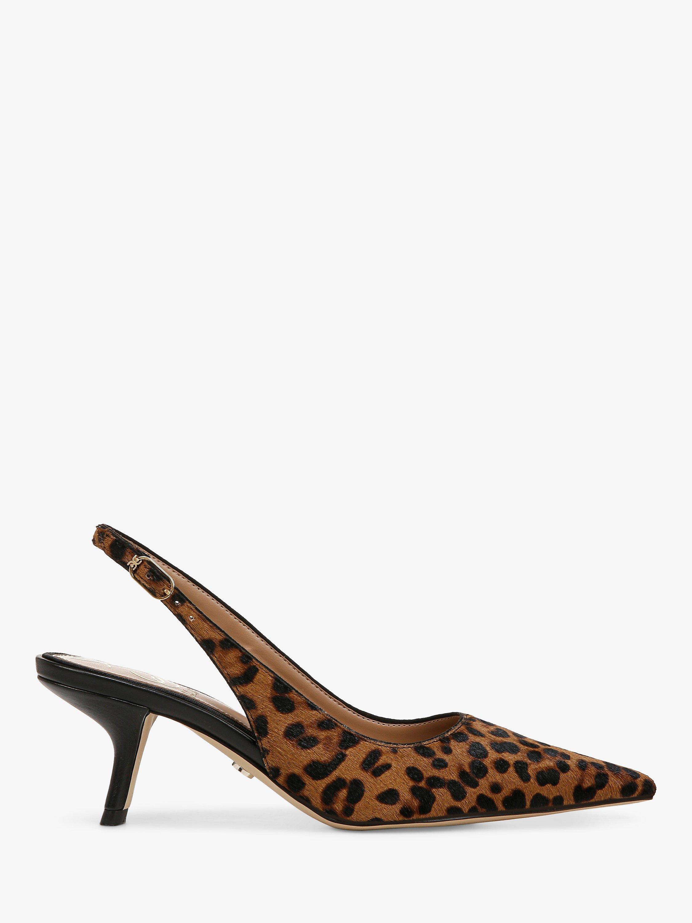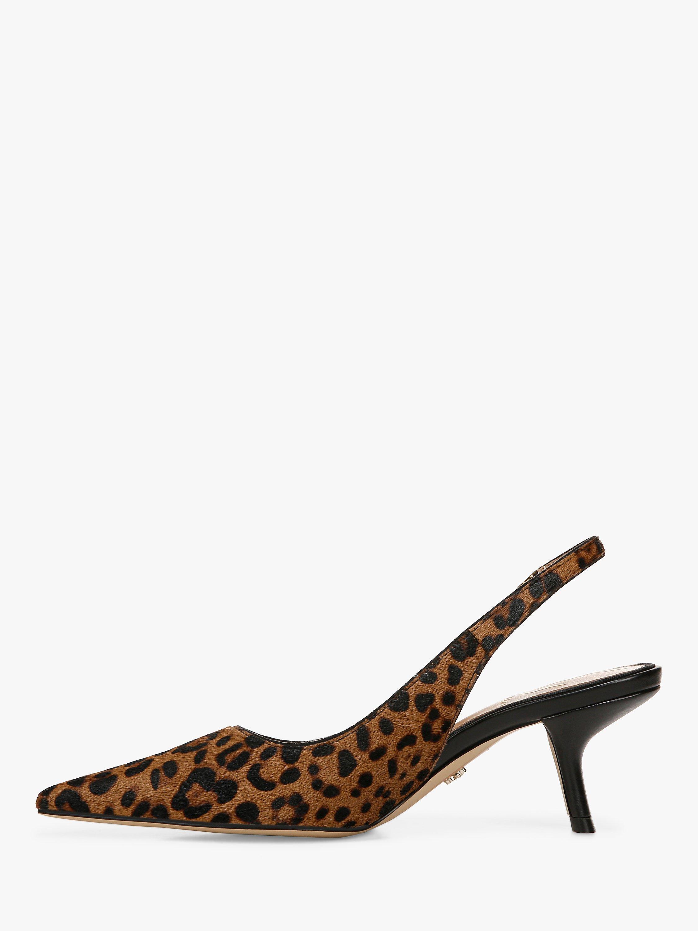 Small heel, slingback, sleek lines, say no more. Slinking your way through evenings and events with ease, this pair of courts from Sam Edelman is made in soft leopard print leather. Set on a kitten heel, they are finished with a pointed toe that's sure to flatter.