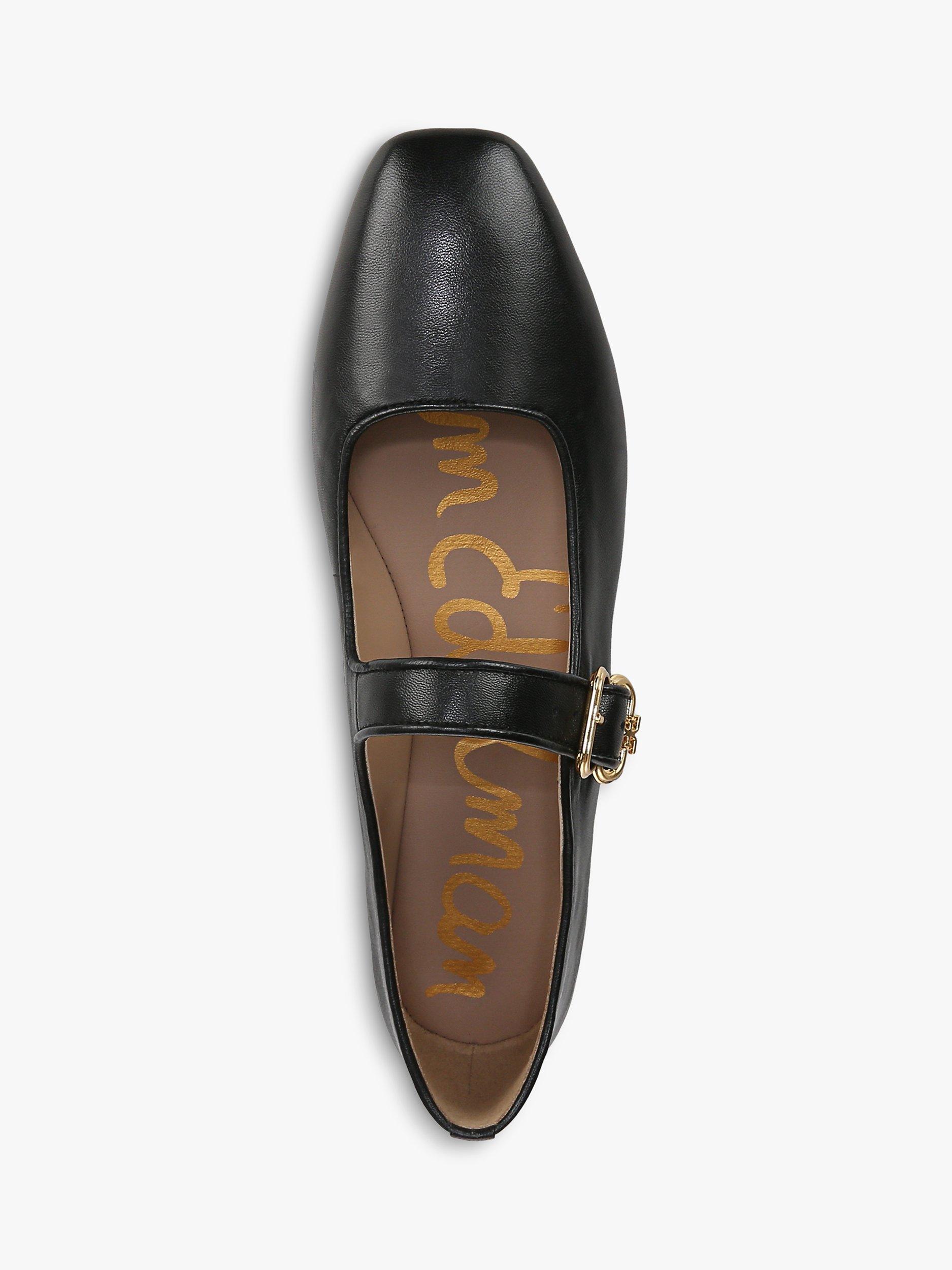 With signature strapping set across the front, this pair of Mary Janes from Sam Edelman is made with leather uppers for long-lasting quality. Sitting on a flat heel, they have a squared toe that is beautifully curved for modern appeal.