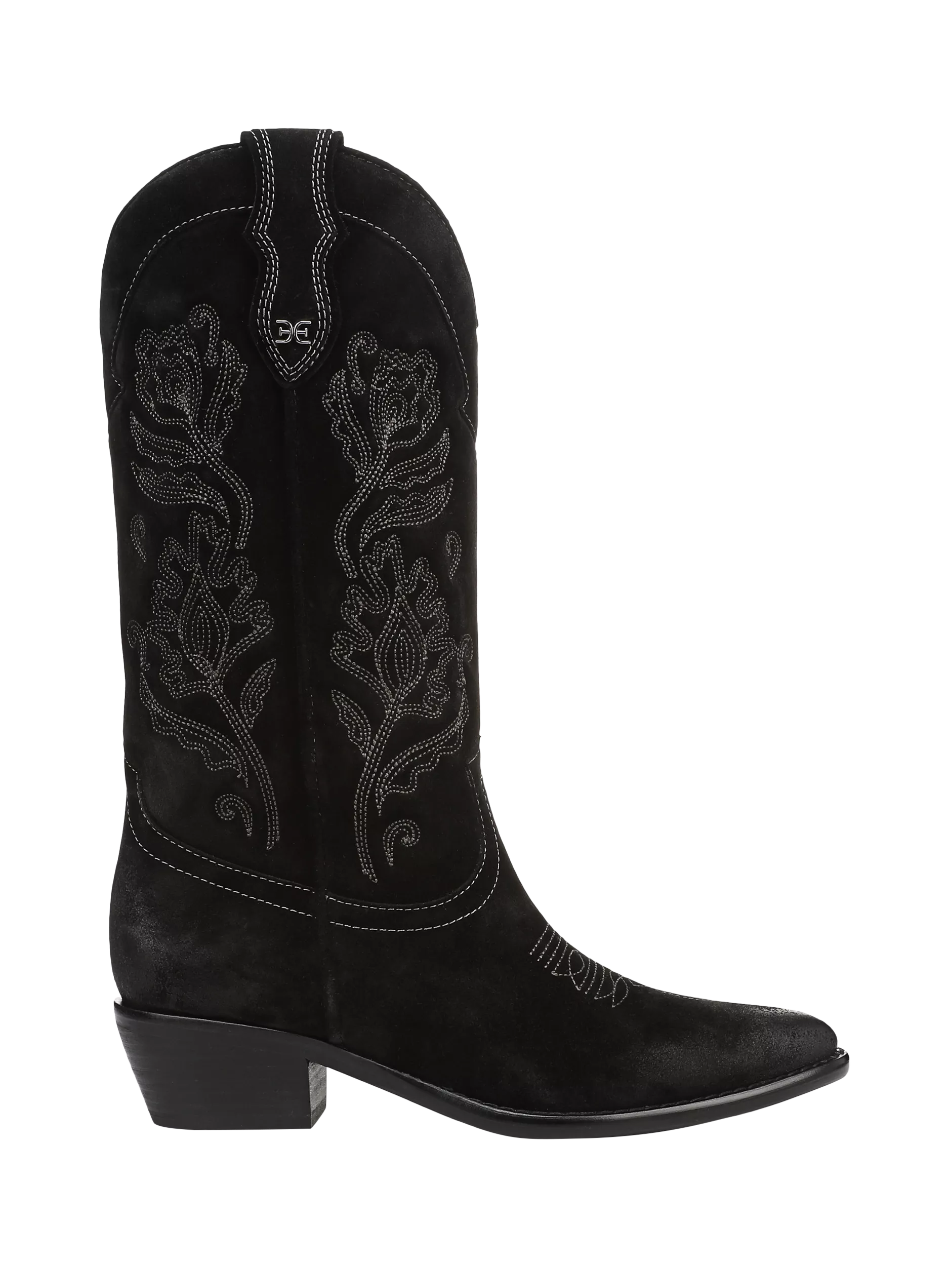 Stand out in the Rue boot, featuring intricate tonal embroidery and a rich suede finish. A modern western essential for everyday style.