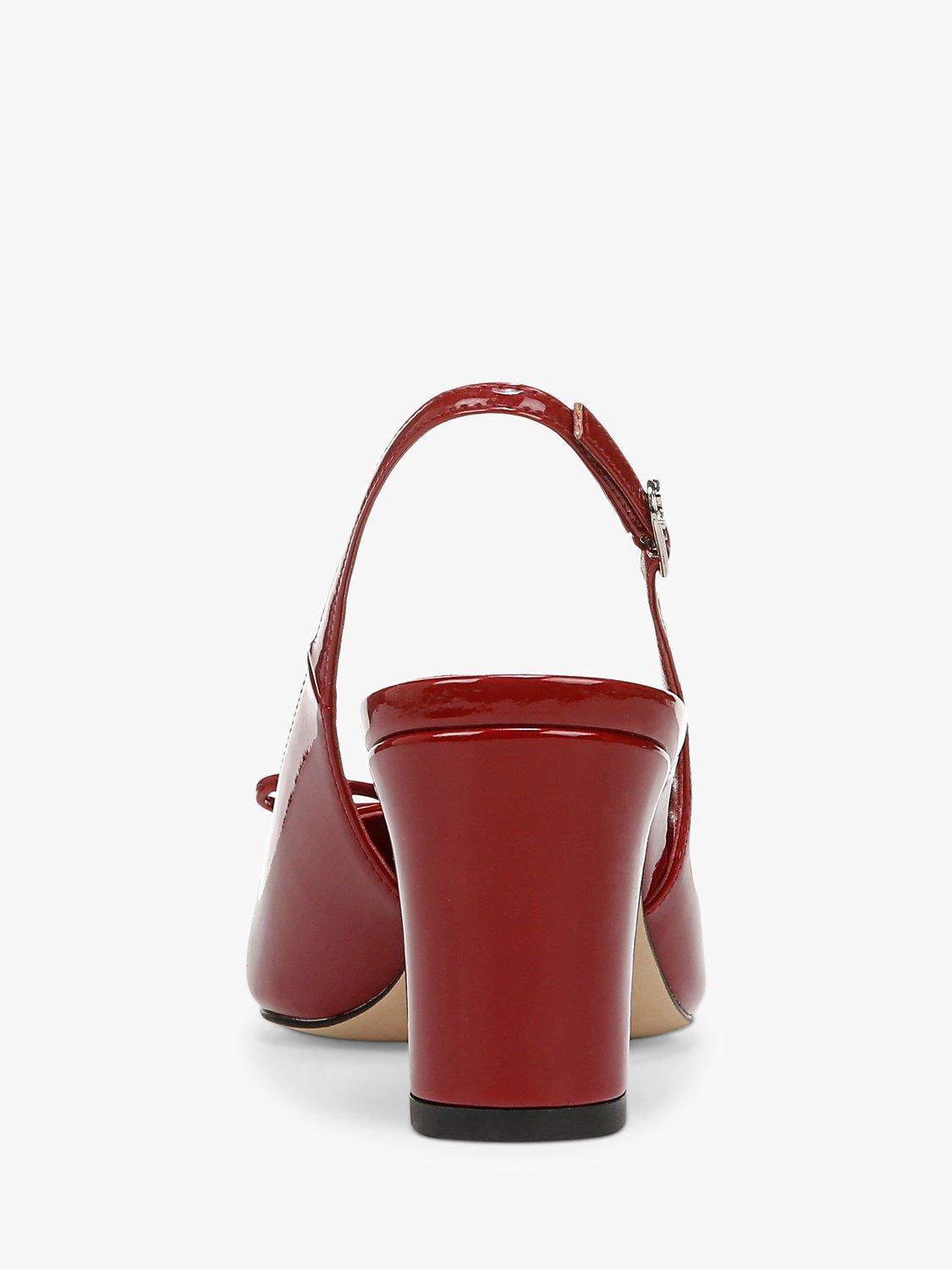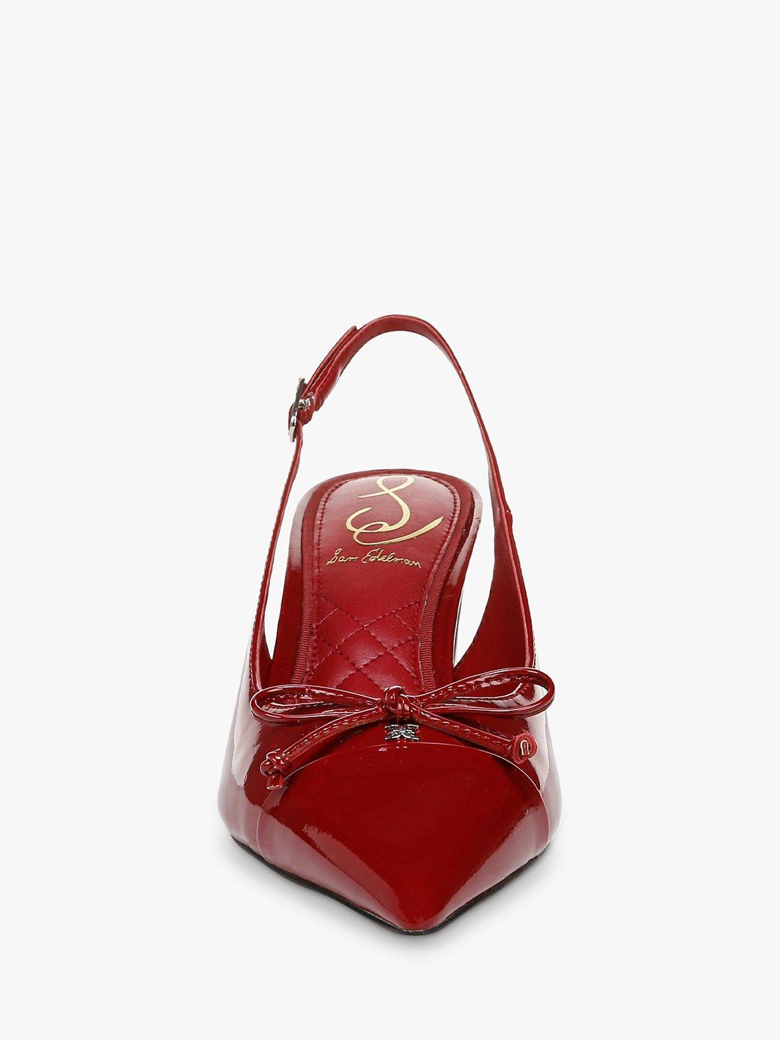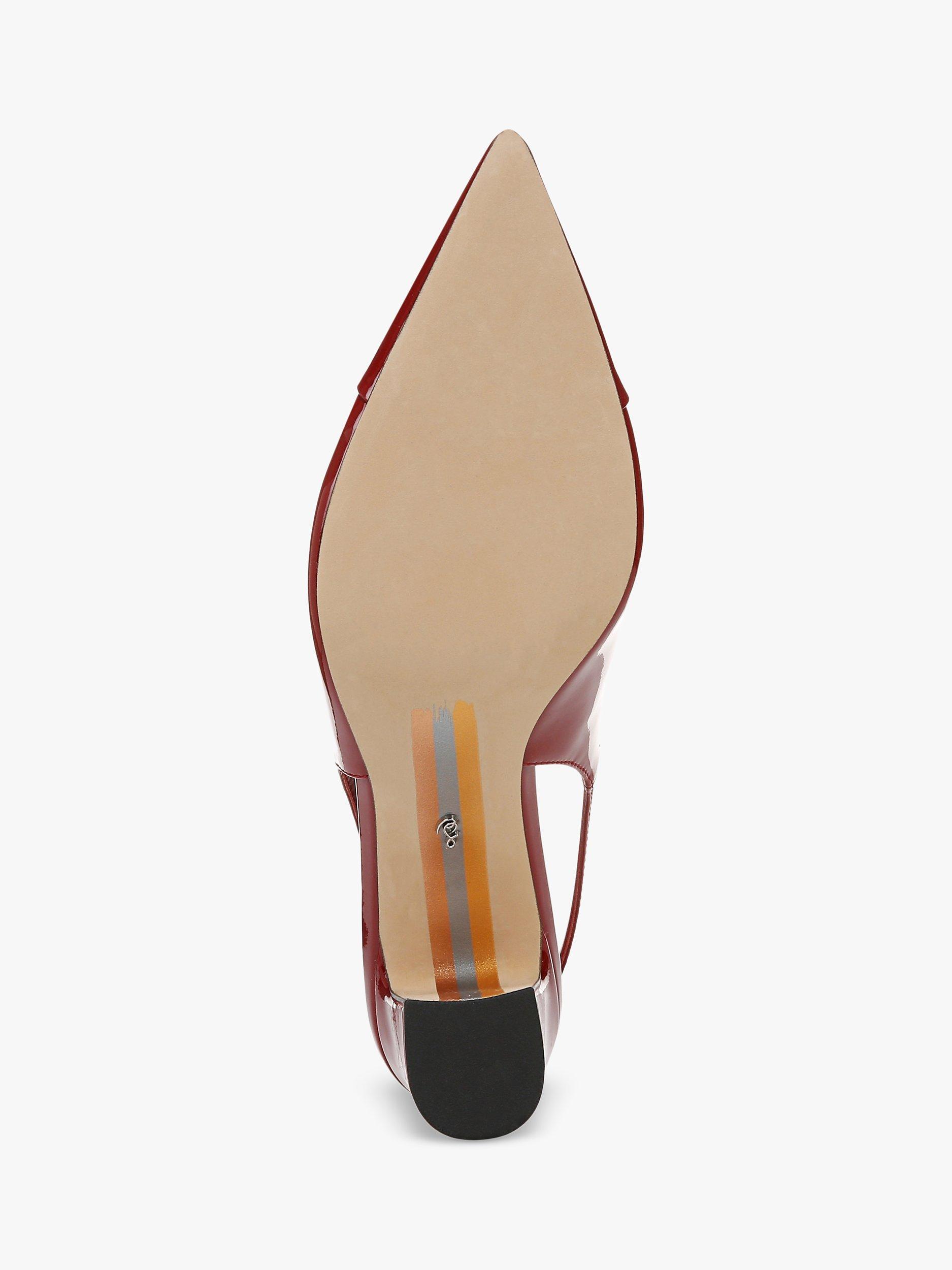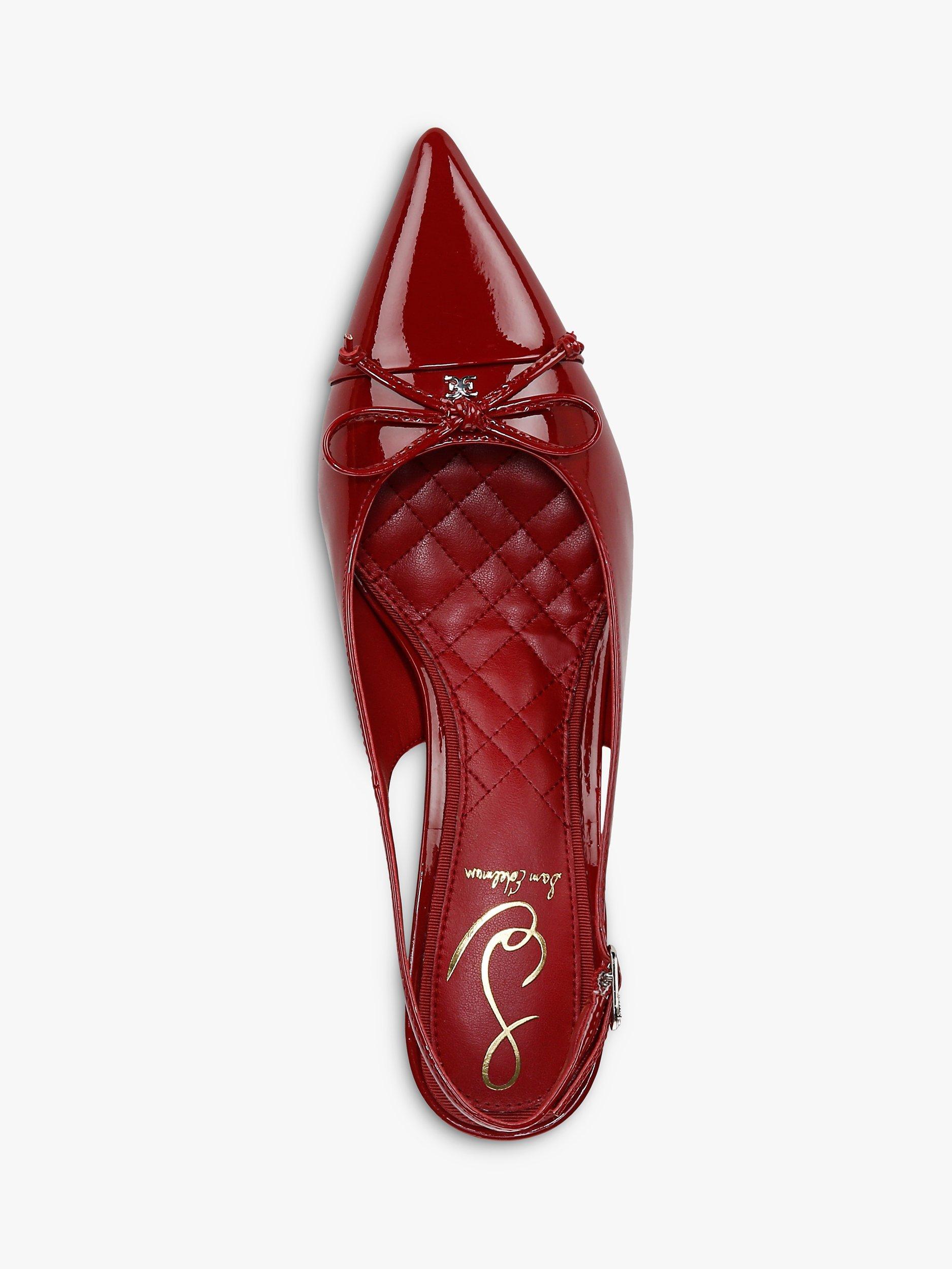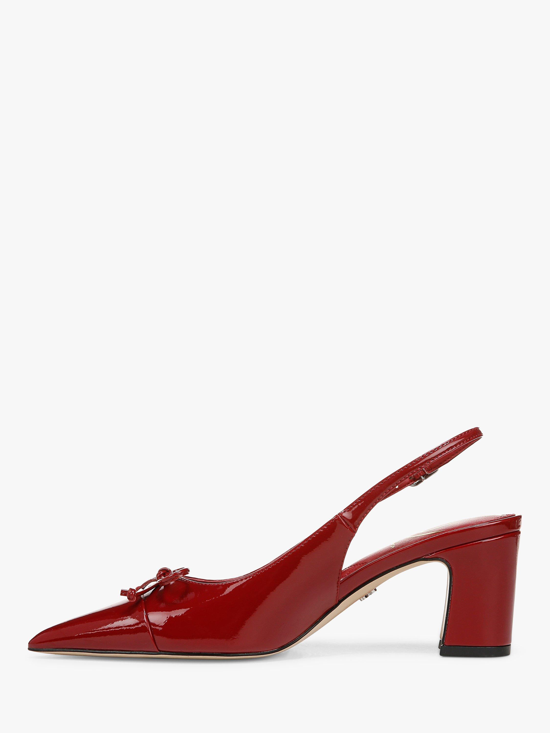 In a traditional court silhouette, this pair of slingbacks by Sam Edelman is designed with faux leather uppers and a subtle bow detail. Sitting on a block heel, they feature a pointed toe for a sharp finish.