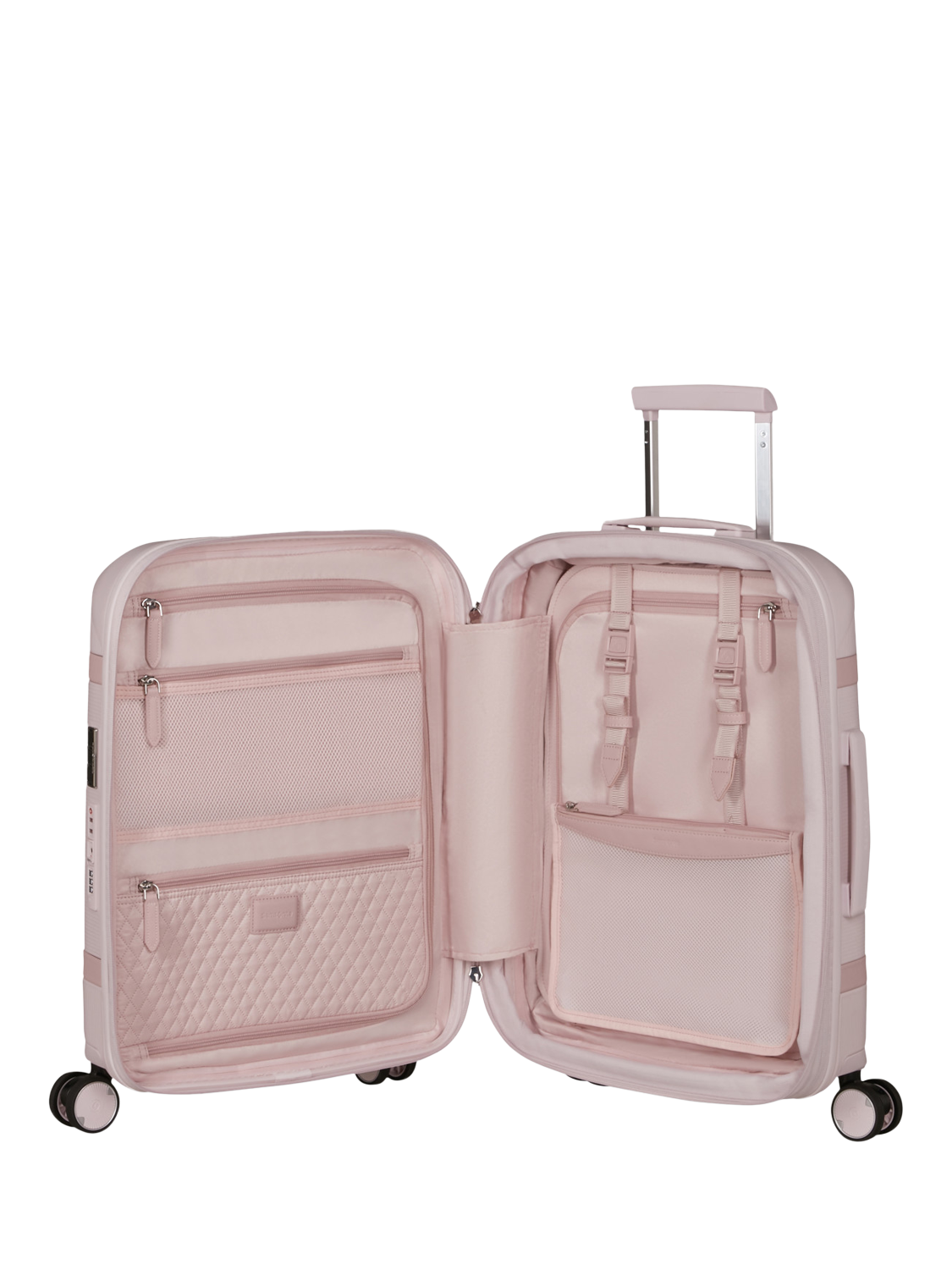 This cabin-sized suitcase has four shock-absorbing and noise-reducing suspension wheels and a telescopic handle for easy transport. Internal organisation keeps your clothes and essentials at their best, and the lining is removable and hand-washable. The combination lock is TSA-approved for peace of mind, and the design is expandable to give you a little more space when you need it.