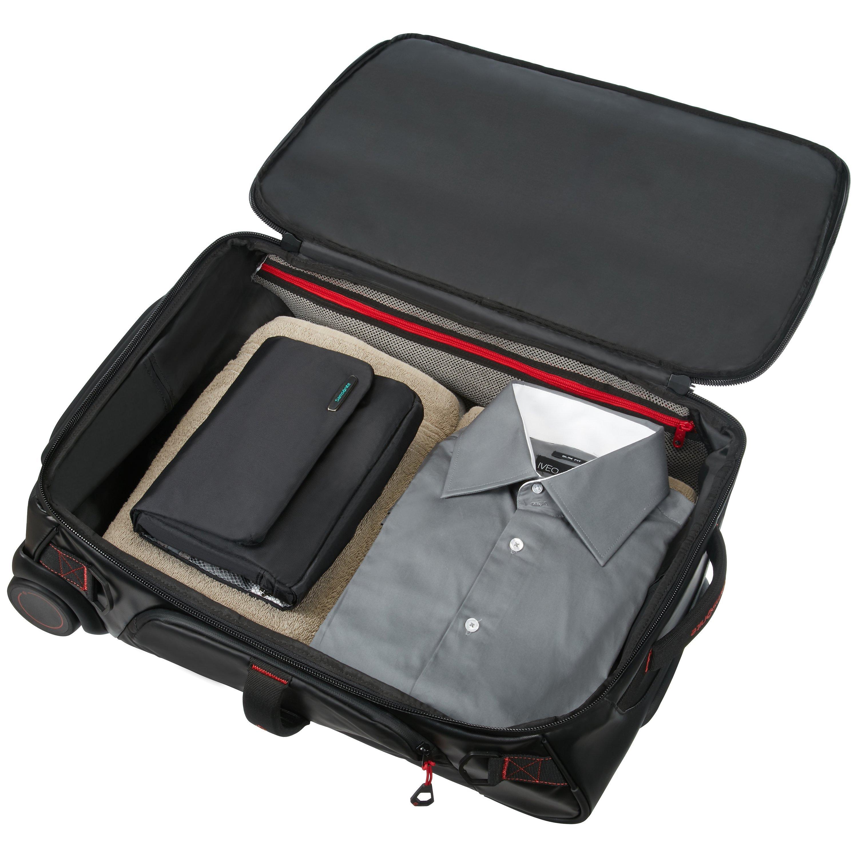 For when you're weaving through airports, the multi-function Samsonite Paradiver Light Wheeled Duffle Backpack design ensures you're never being dragged behind by your luggage.