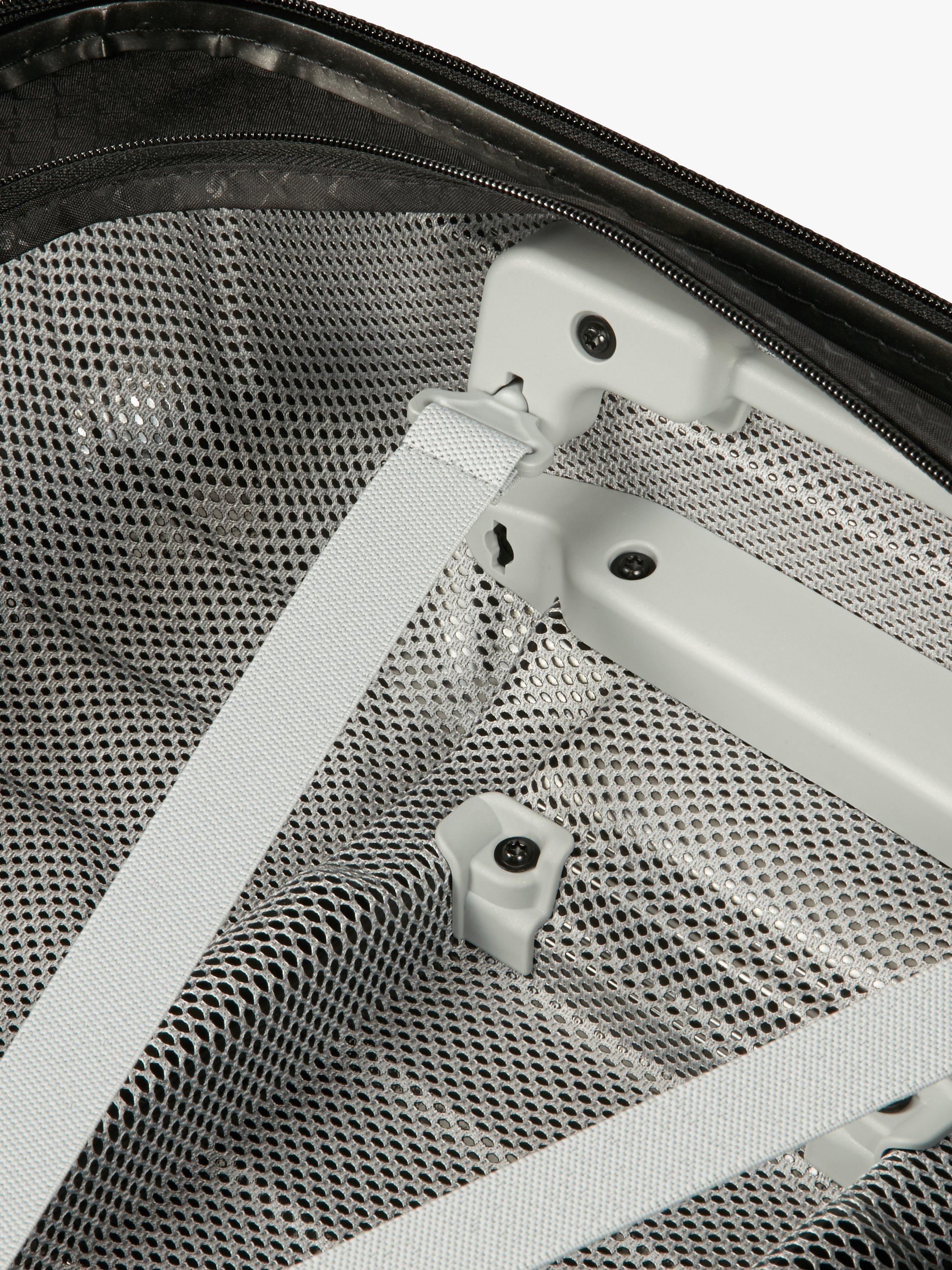 Made from Roxkin™, an exclusive material developed by the brand, it bounces back into shape, offering remarkable strength, resilience and lightness. The sophisticated design resonates confidence and is fully equipped to meet all your travel needs. Lightweight, and fitted with two carry handles, it's also easily portable.