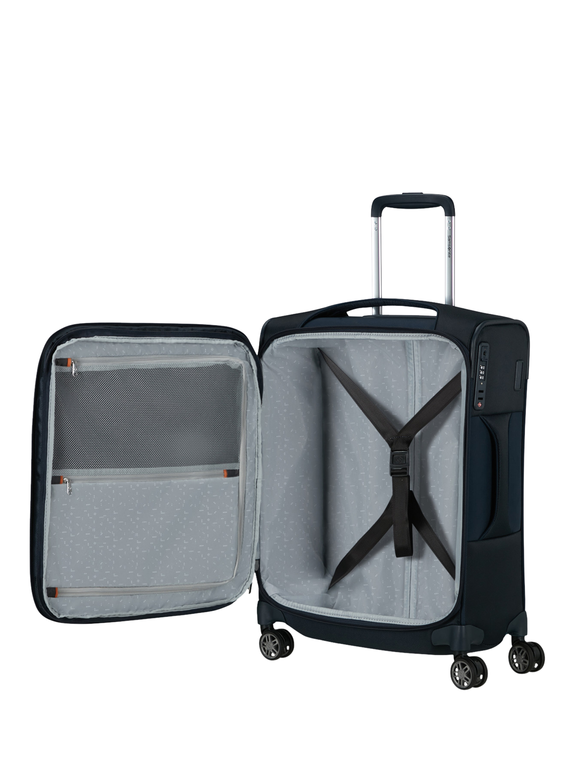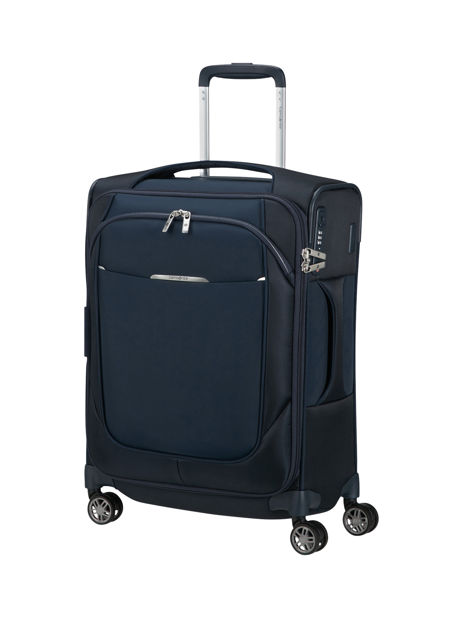 This cabin-sized suitcase has four shock-absorbing and noise-reducing suspension wheels and a telescopic handle for easy transport. Internal organisation keeps your clothes and essentials at their best, and there's a handy front exterior pocket.