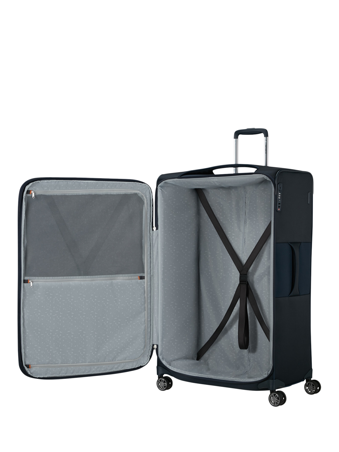This extra-large suitcase has four shock-absorbing and noise-reducing suspension wheels and a telescopic handle for easy transport. Internal organisation keeps your clothes and essentials at their best, and there's a handy front exterior pocket.