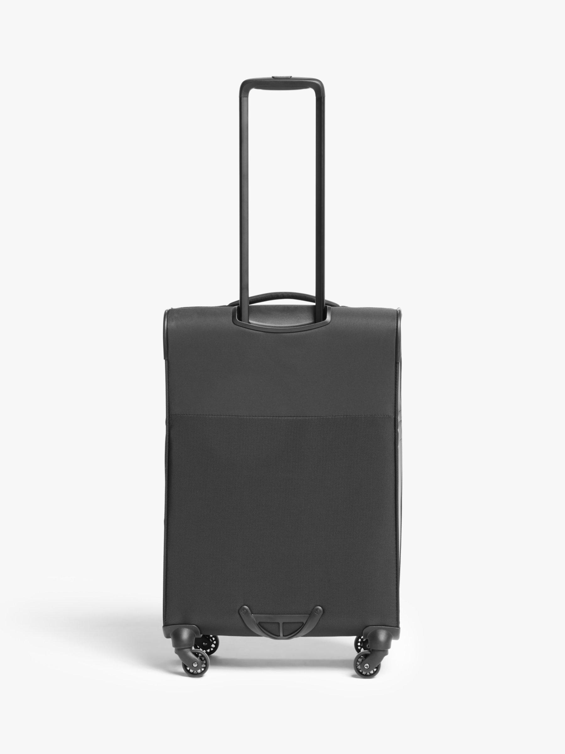 The multi-stage push button locking handle adjusts comfortably to any size traveller while the four wheeled system offers superb movement.