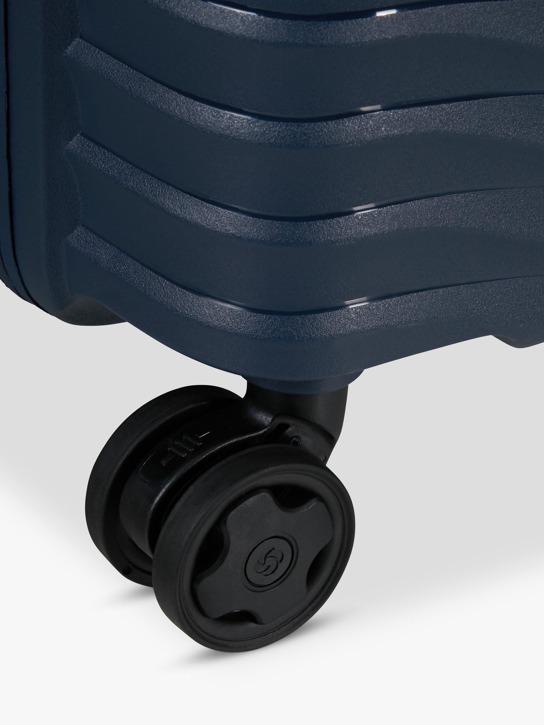 Choose comfort with Samsonite's Upscape range. Enjoy carefree travelling thanks to its lightness, the four double shock-absorbing suspension wheels and its removable and washable interior lining. The handy expandability and eye-catching silver lining will only add to the travel fun.
