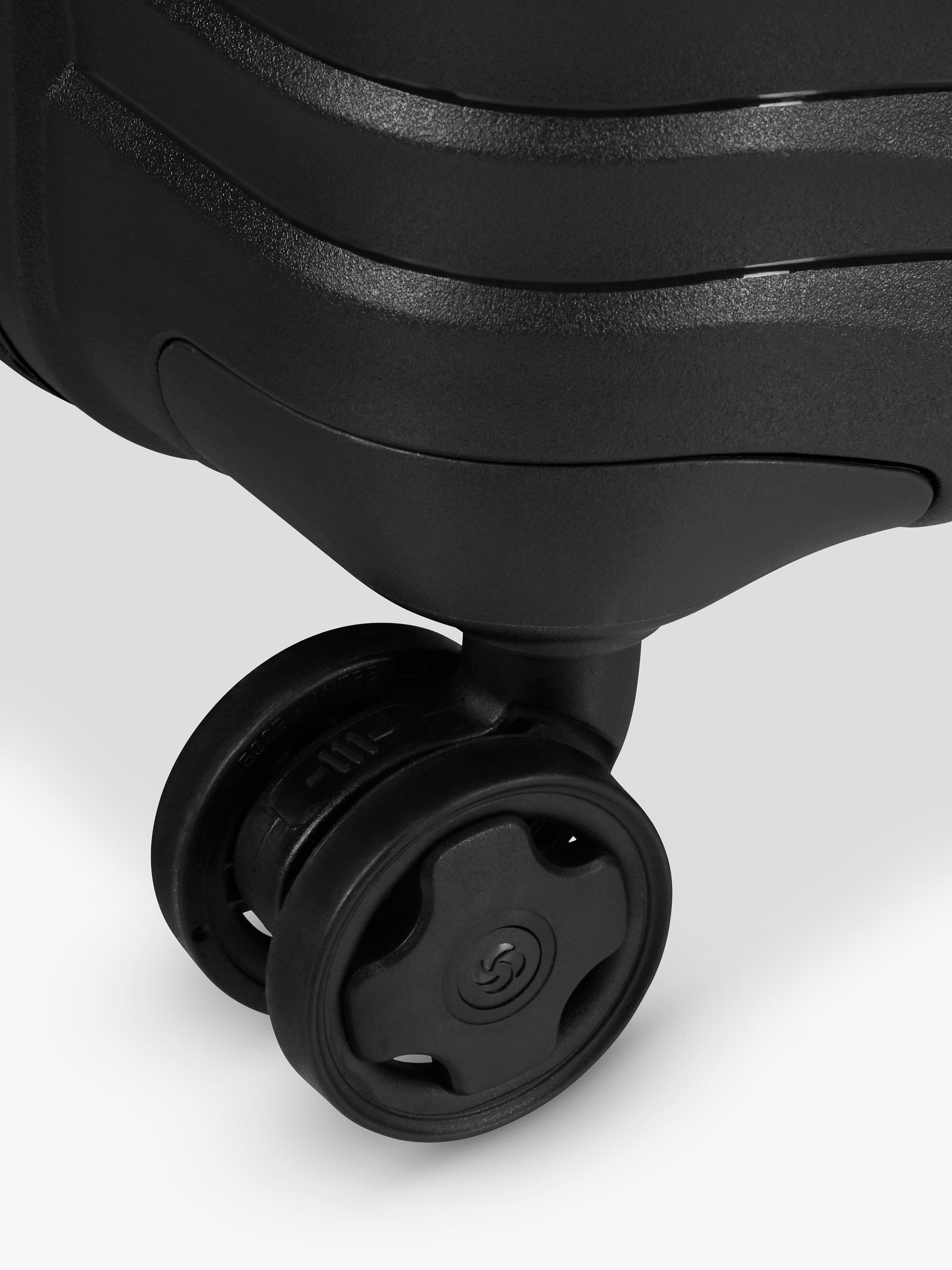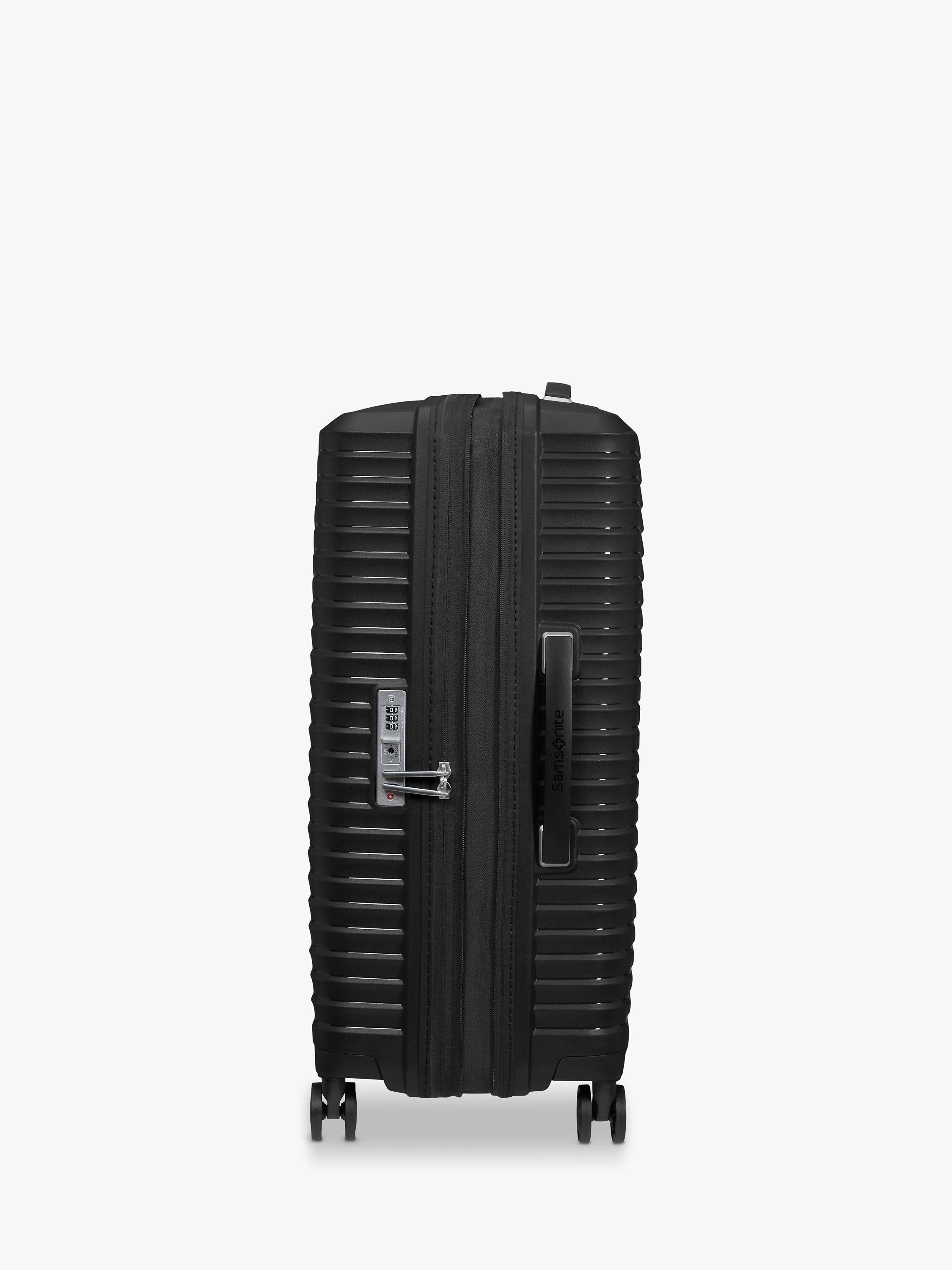 Choose comfort with Samsonite's Upscape range. Enjoy carefree travelling thanks to its lightness, the shock-absorbing suspension wheels and its removable & washable interior lining. The handy expandability and eye-catching silver lining will only add to the travel fun!