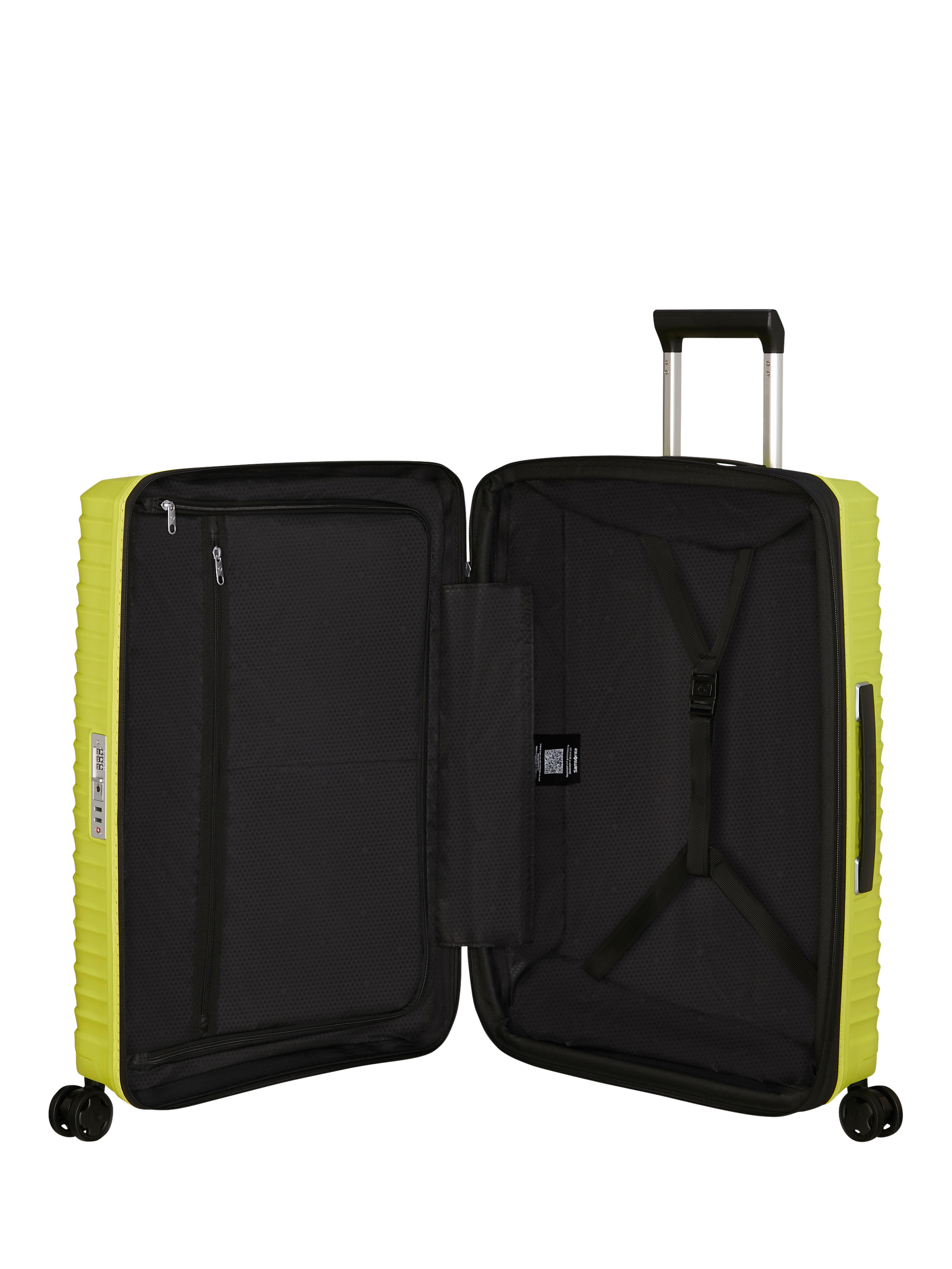 Choose comfort with Samsonite's Upscape range. Enjoy carefree travelling thanks to its lightness, the shock-absorbing suspension wheels and its removable & washable interior lining. The handy expandability and eye-catching silver lining will only add to the travel fun!