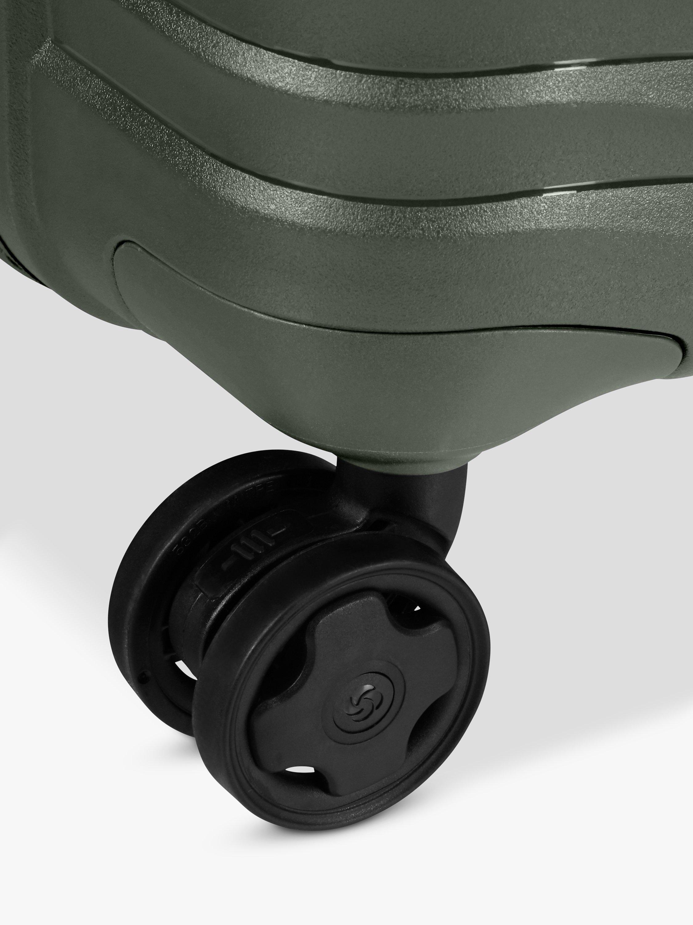 Choose comfort with Samsonite's Upscape range. Enjoy carefree travelling thanks to its lightness, the four double shock-absorbing suspension wheels and its removable and washable interior lining. The handy expandability and eye-catching silver lining will only add to the travel fun.