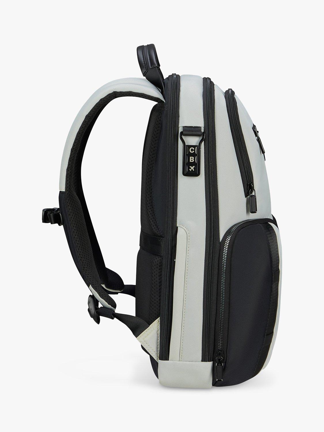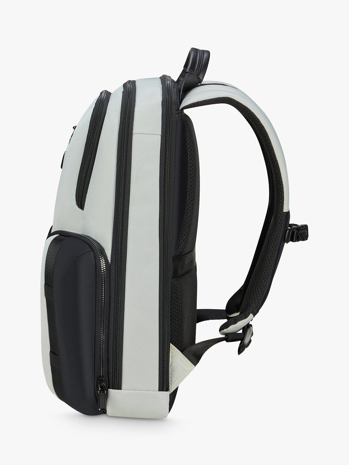 This water-resistant backpack has a section for a laptop up to 15.6 inches (40cm). The RFID-protected pocket protects against payment and identity fraud through skimming, by placing RFID-blocking material between the product's outer layer and internal lining.