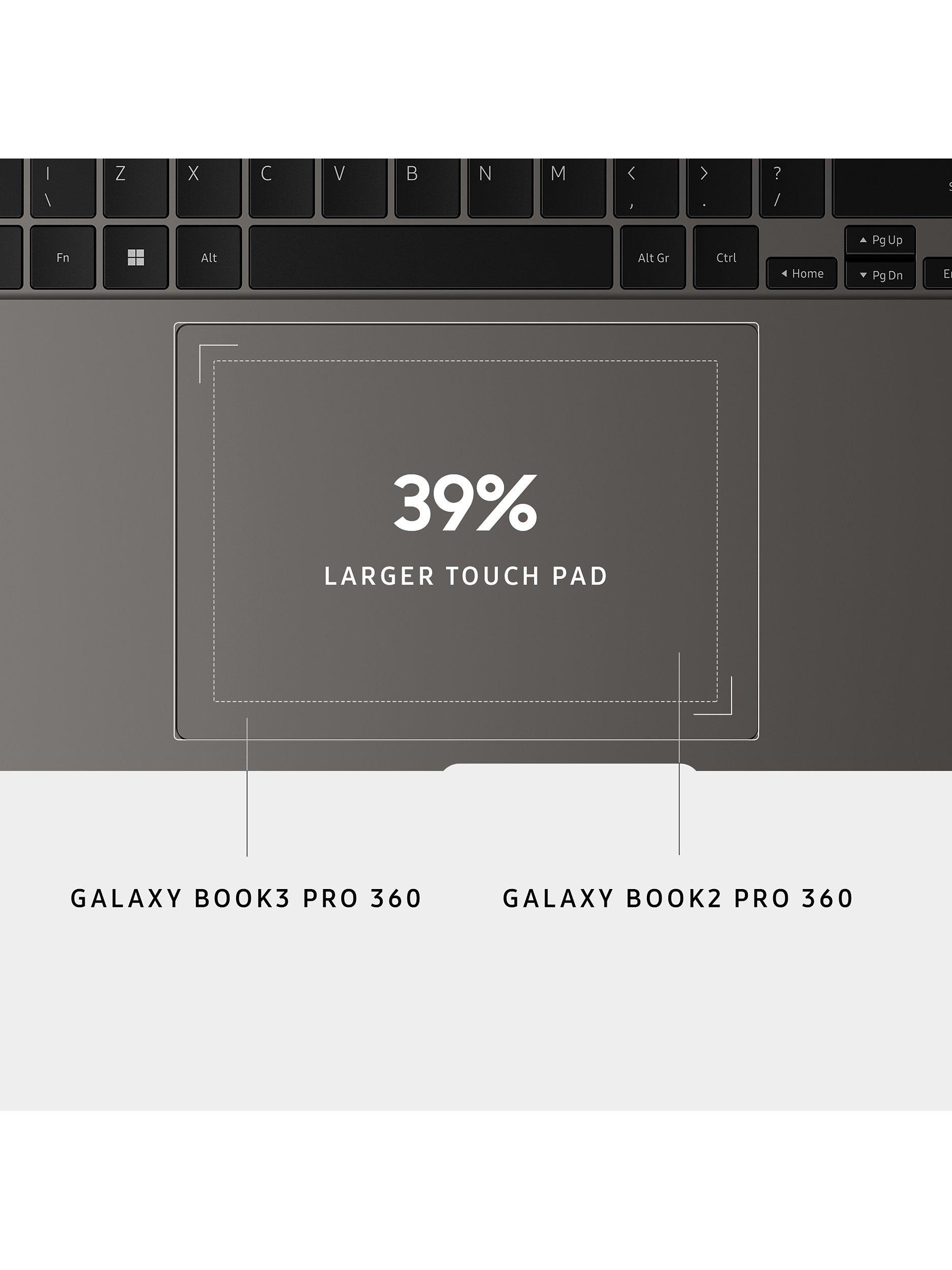 Super fast. Super Light. Super Powerful. The Galaxy Book3 Pro gives you the flexibility to work from anywhere. The 120Hz AMOLED touchscreen display makes everything feel super fluid and responsive on-screen, while the quad-speaker sound system fills the room with its punchy bass. All this, along with versatile connectivity options and oh-so-many pixels. Job done.
