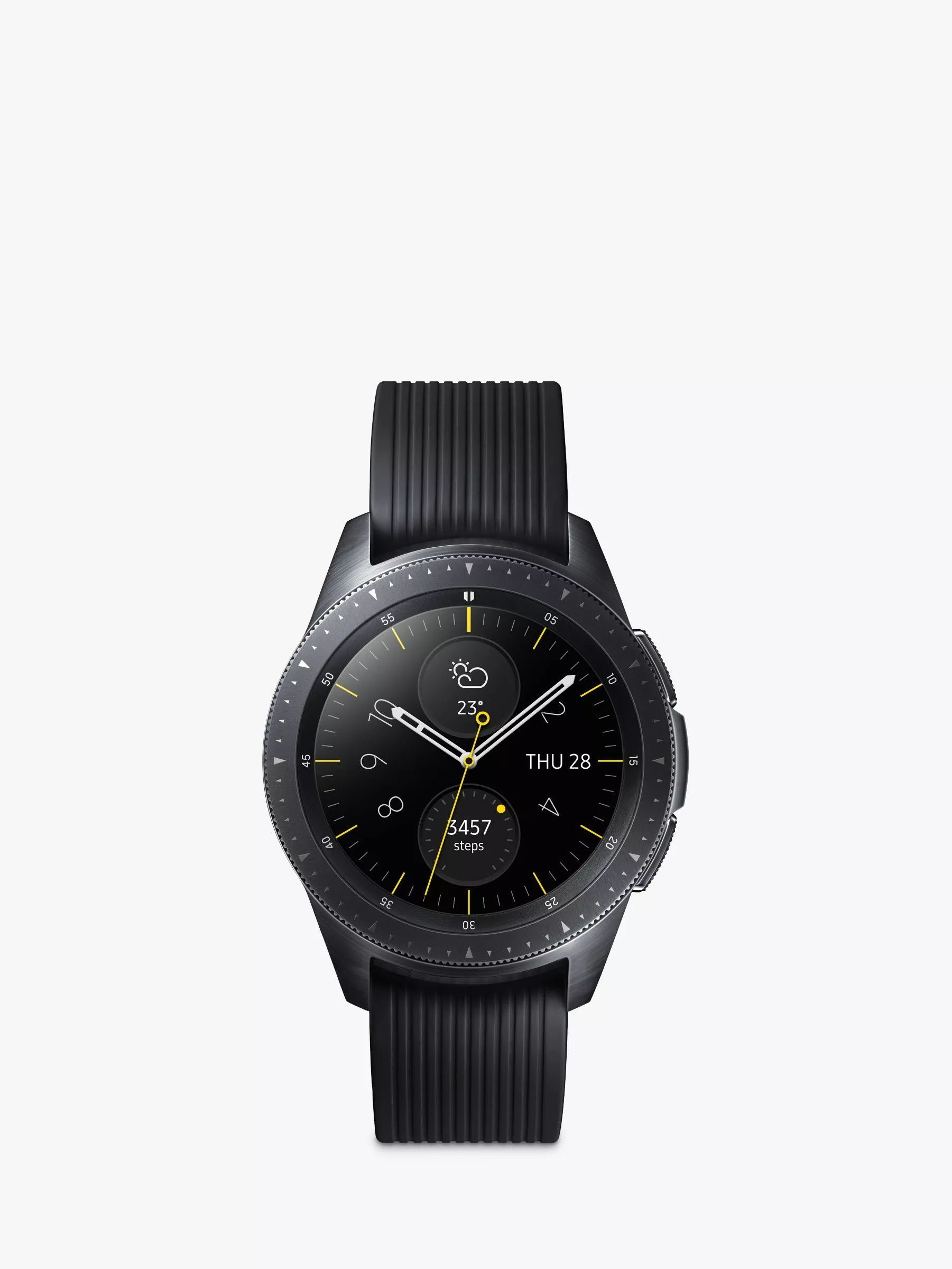 Whatever your style, express it with the Galaxy Watch. Choose from three colours, each with a load of customisable faces. Whether Rose Gold, Midnight Black or Silver are your thing, you can go from work to the weekend, effortlessly. You can also choose from two sizes – a sleek 42mm or statement 46mm. From the rotating bezel to the crystal-clear sAMOLED circular screen, every element of the design has been carefully refined.