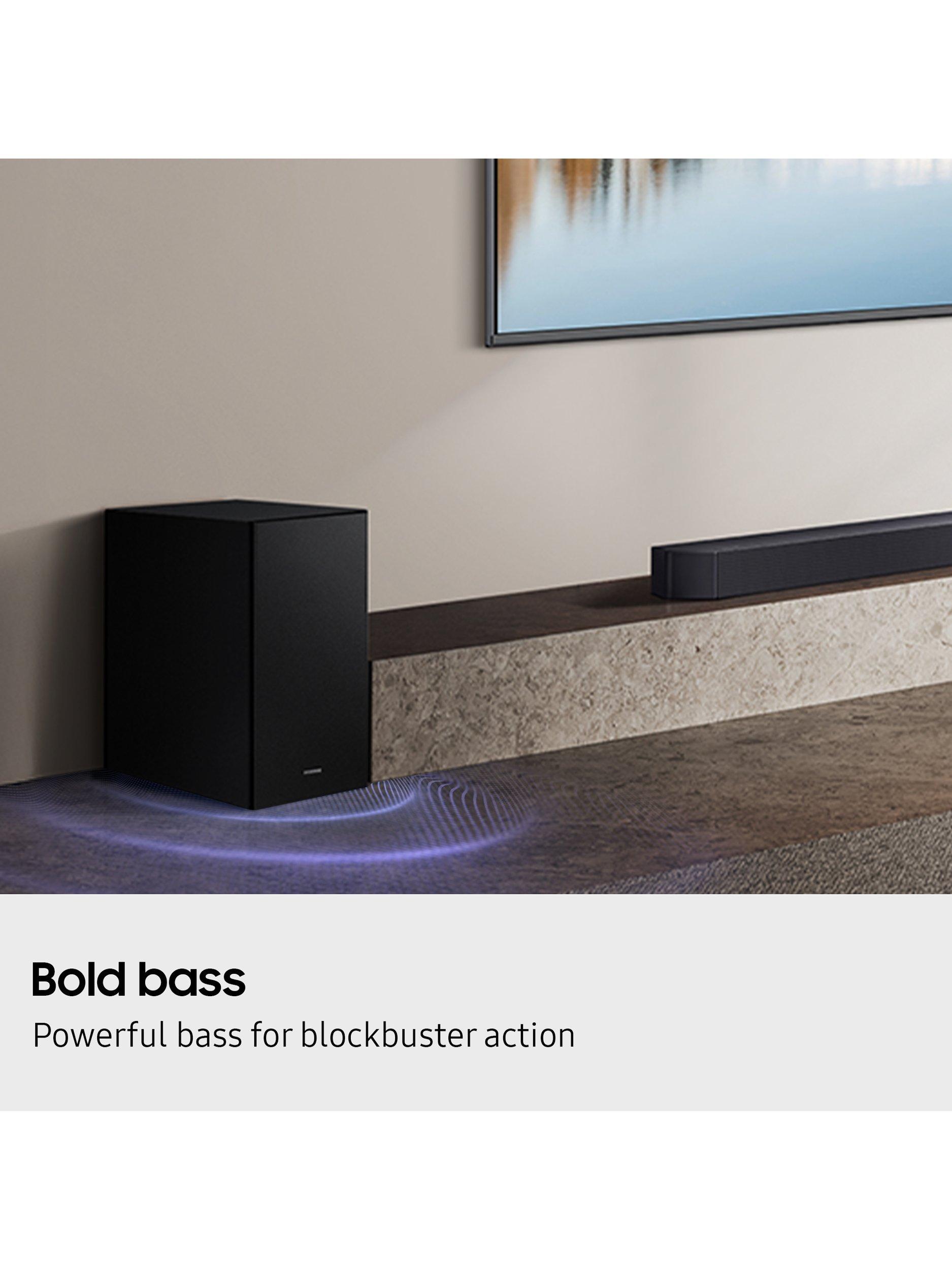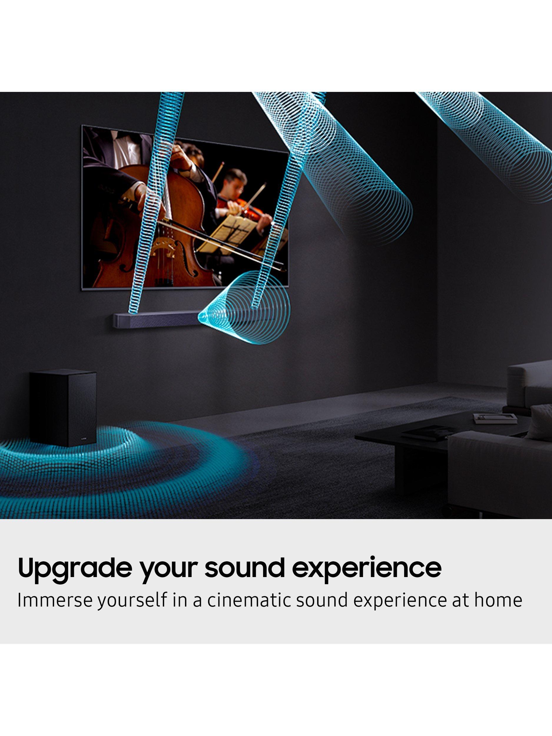 Feel your entertainment all around you with Samsung’s HW-Q600F soundbar, and get 3D surround sound delivered by 9 speakers. You’ll enjoy deep bass that brings all the action on screen to life thanks to a separate compact wireless subwoofer, and get sound that’s optimised to the type of content you’re watching. Plus, you can enhance the cinematic experience with AI-powered technology that syncs this soundbar with selected compatible Samsung TVs.