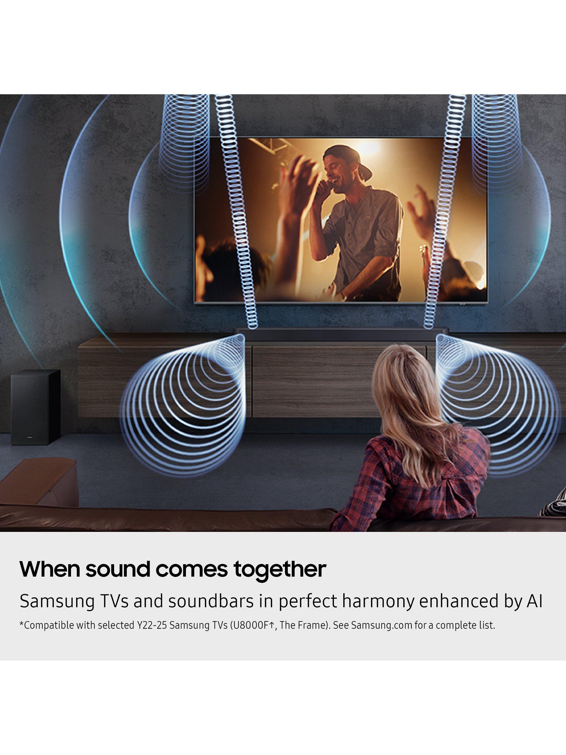 Enhance your cinematic experience with AI-powered technology that syncs your compatible Samsung TV and soundbar in perfect harmony. Q-Symphony is compatible with selected 2022-2025 Samsung TVs (U8000F and above, and The Frame).