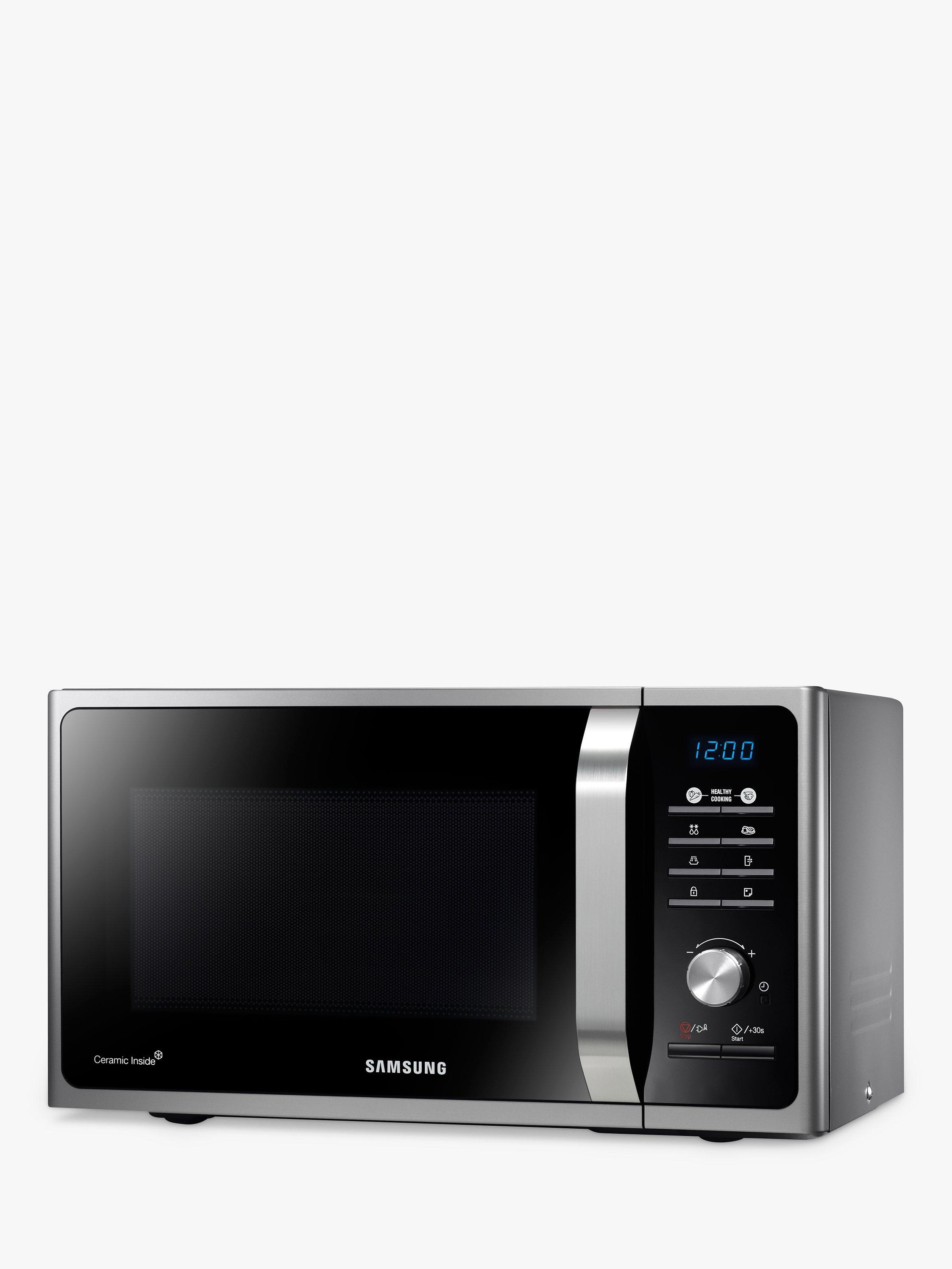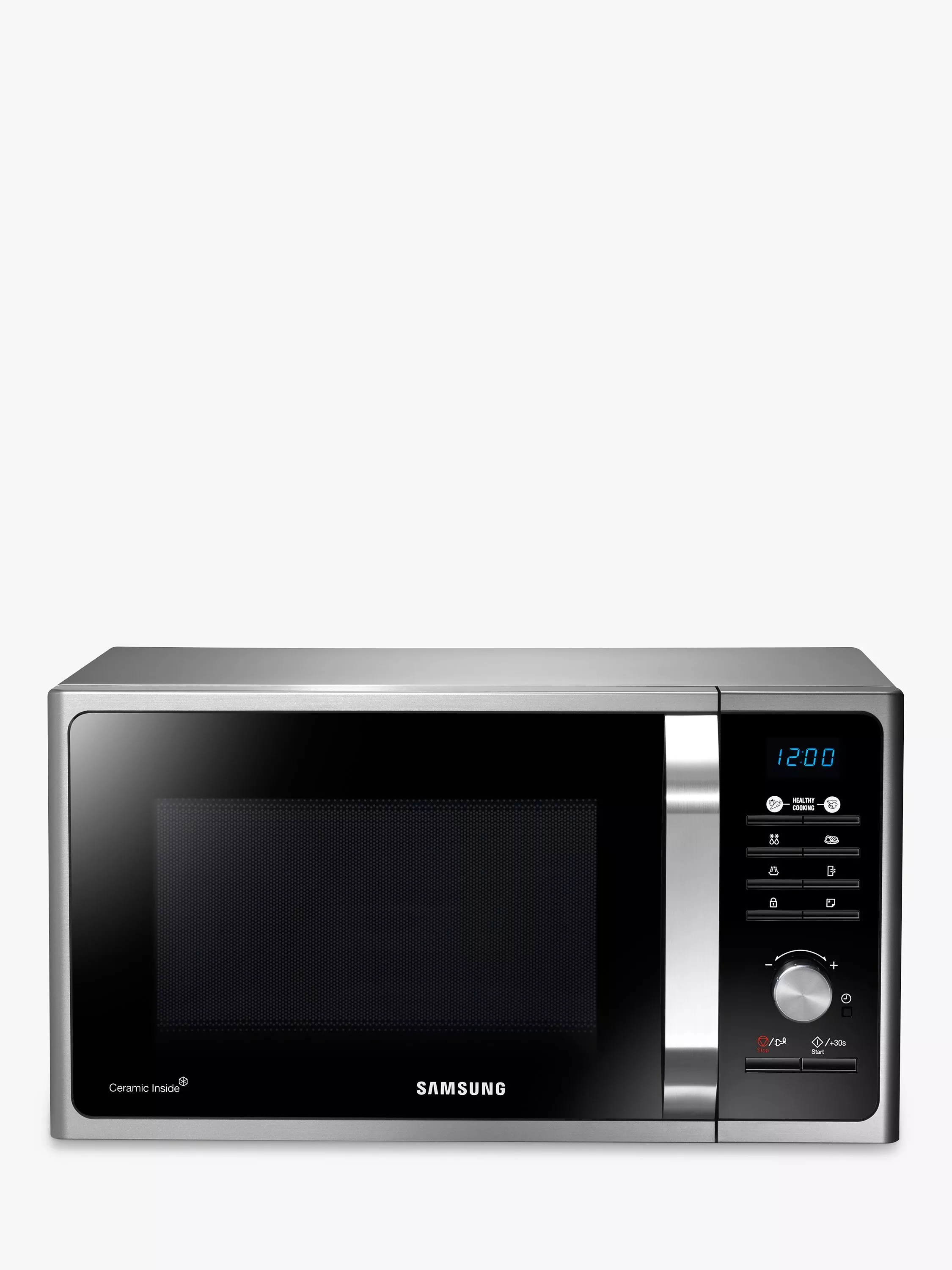 The Samsung MS23F301TAS features a cool blue ‘ice’ led display, sleek finish, and stylish controls. All of Samsung’s Microwaves are fitted with a ceramic interior. This special oven cavity is extremely hard-wearing, scratch resistant and anti-bacterial. This makes the oven lining very durable, coping with the daily use of dishes in and out of the cavity. It is exceptionally easy to clean and helps provide a hygienic interior in which to cook your food. The result is simple; each meal is packed with flavour and cooked to perfection.