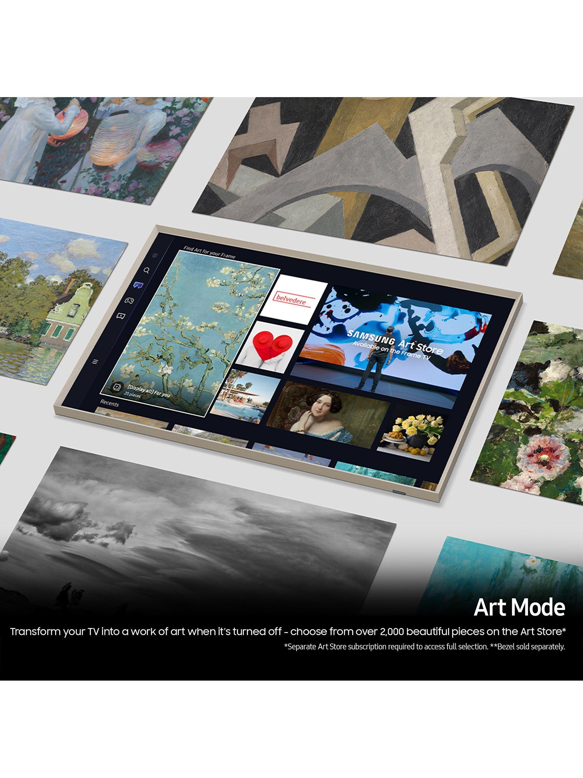 The Frame transforms into a showcase of artwork and photography when it's turned off, allowing the TV to become part of your décor. There are over 2,000 beautiful works of art to choose from in the Art Store (subscription required), and you can upload your own photography to cherish important memories. It’s a TV that looks just like a picture frame, with a stunningly slim profile. You can style it your way with interchangeable bezels that suit your taste and style, and they're magnetic so they're easy to swap (bezels are sold separately).