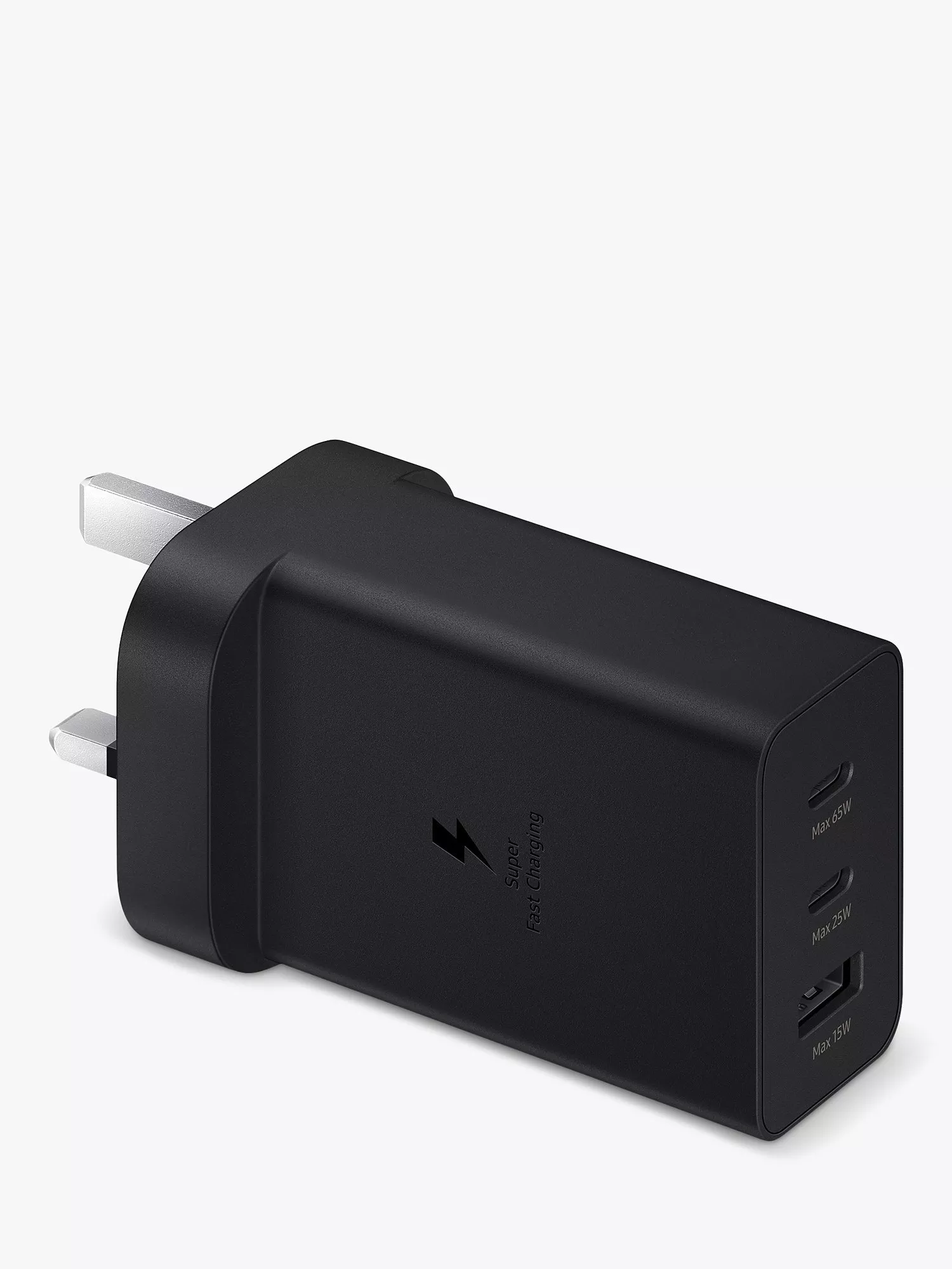 Enjoy super-fast charging for your range of tech essentials. From earbuds to laptops, you can charge a wide range of devices at their optimal speeds and take advantage of their ideal charging times. This trio power adapter features a USB-C input at max 65W power, a second USB-C input at max 25W power, and a USB-A input at max 15W power.
