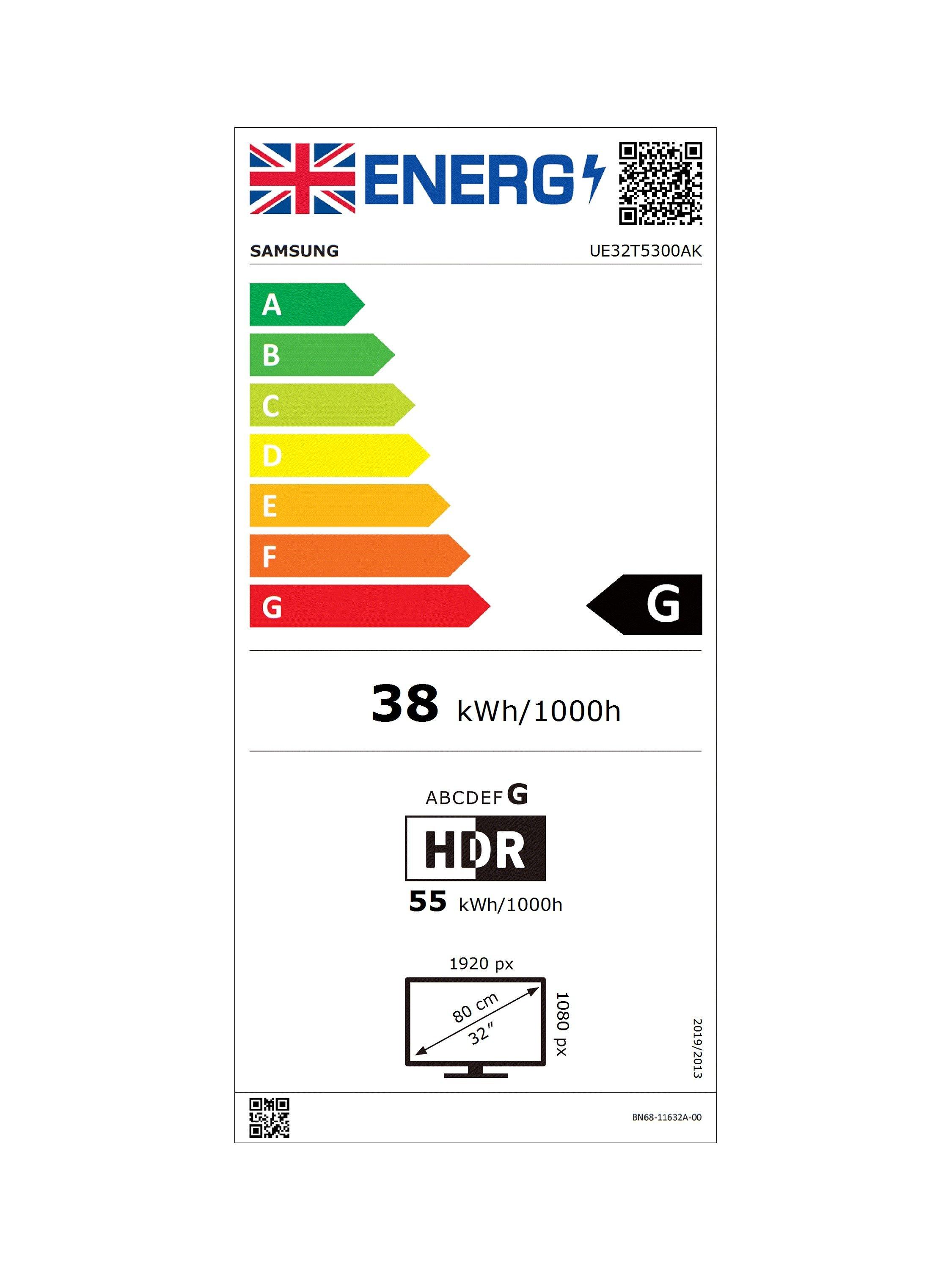 SamsungUE32T5300 LED HDR Full HD 1080p Smart TV, 32 inch with TVPlus, Black