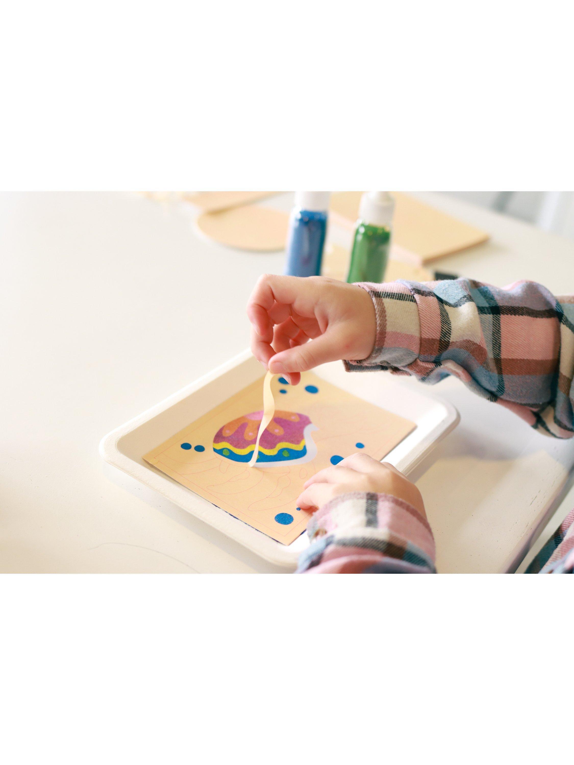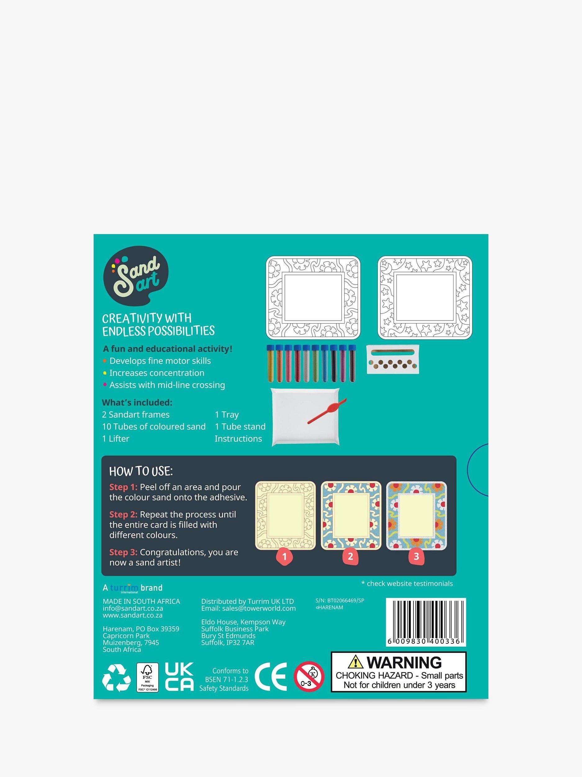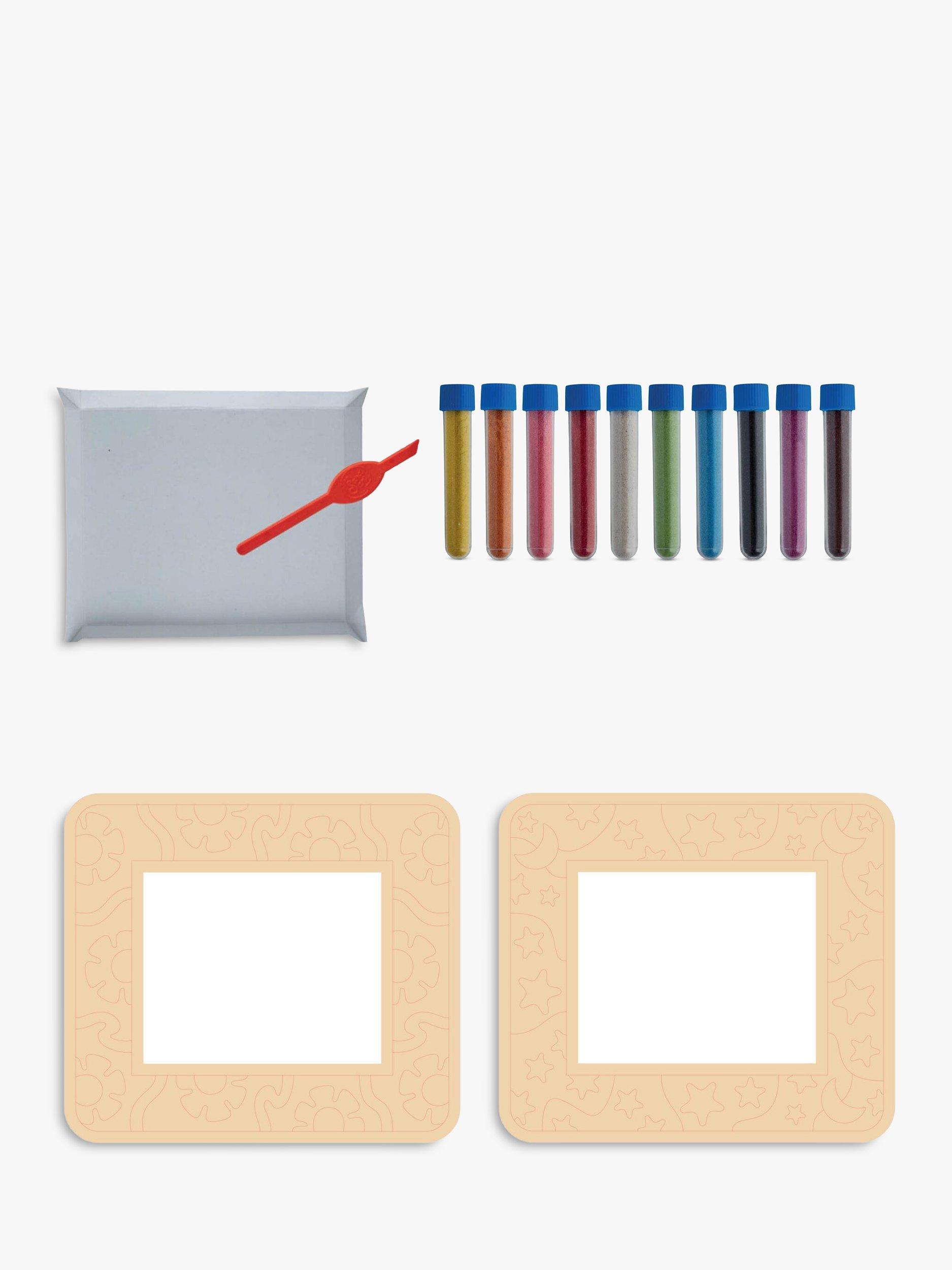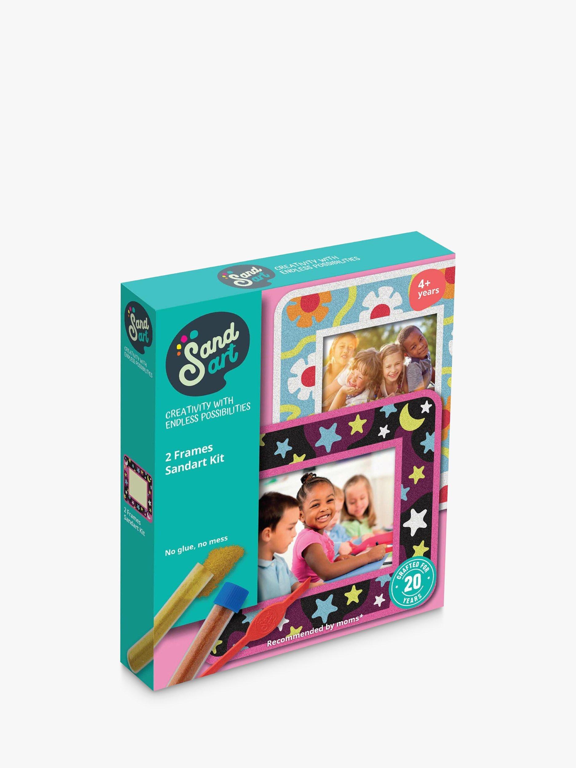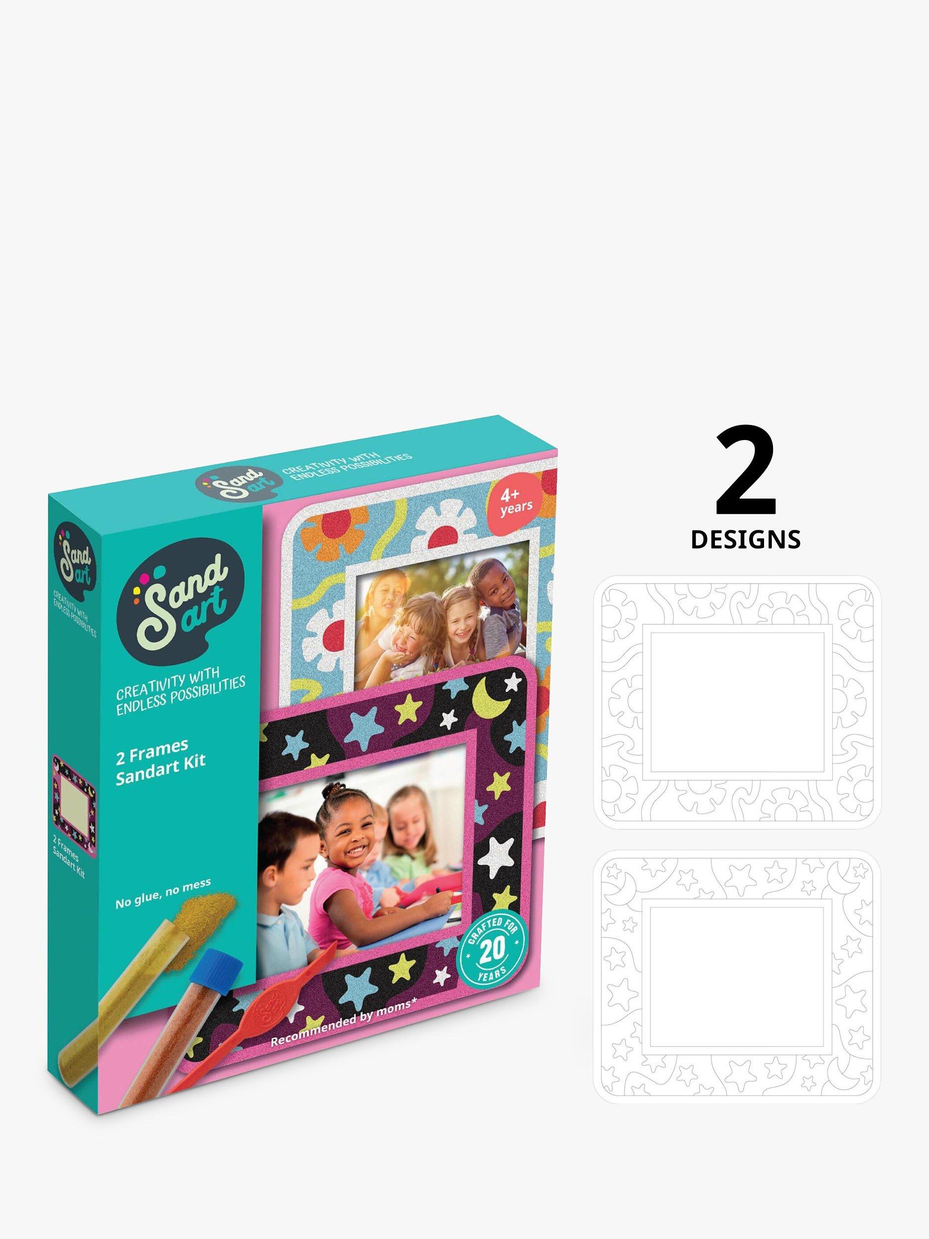This DIY art project is perfect for children want to explore their creative side and make beautiful Sandart frames for their photographs. The kit includes two specially designed adhesive photo frames featuring adorable designs, along with 10 tubes of colourful sand to create stunning designs.
