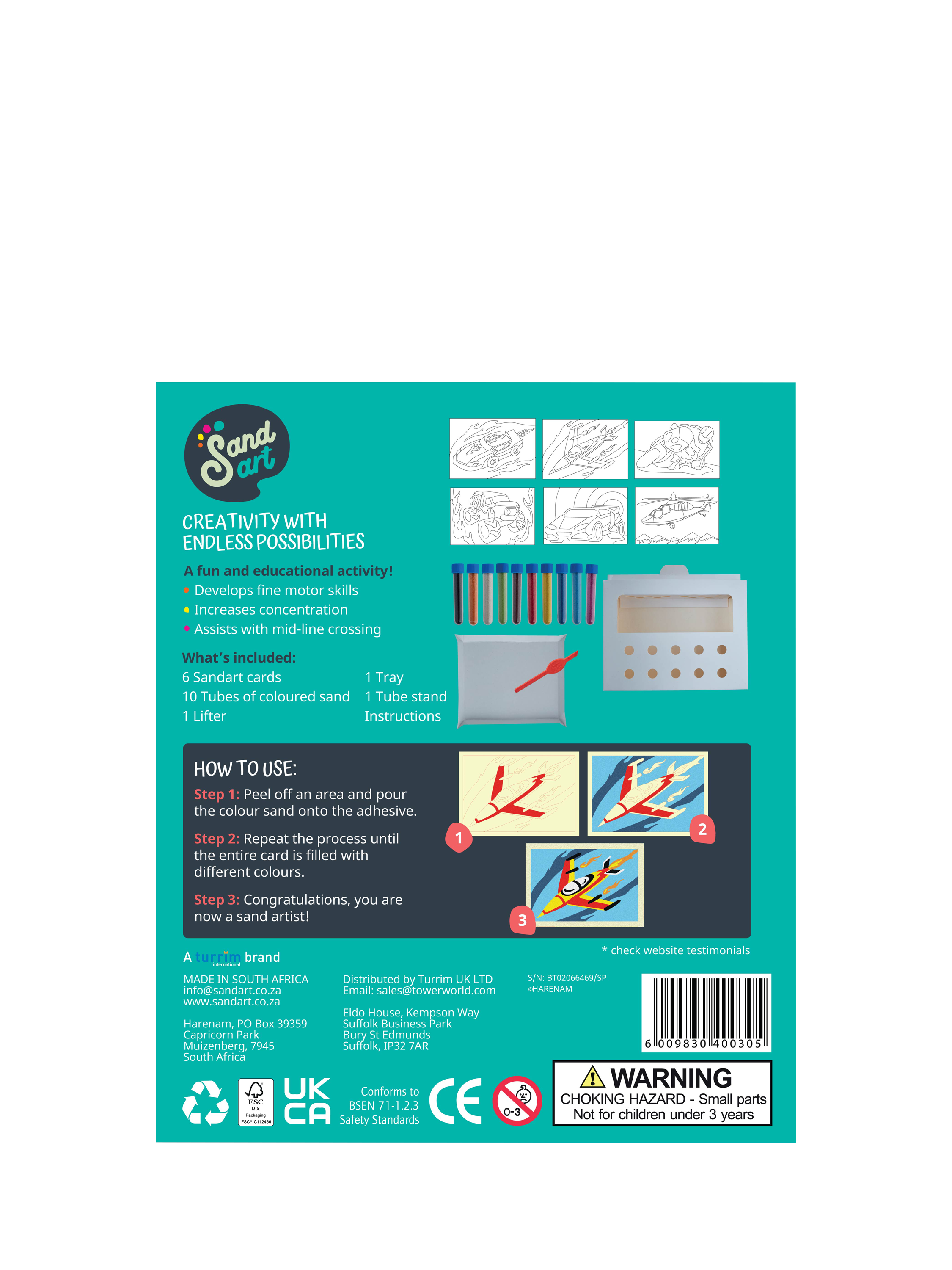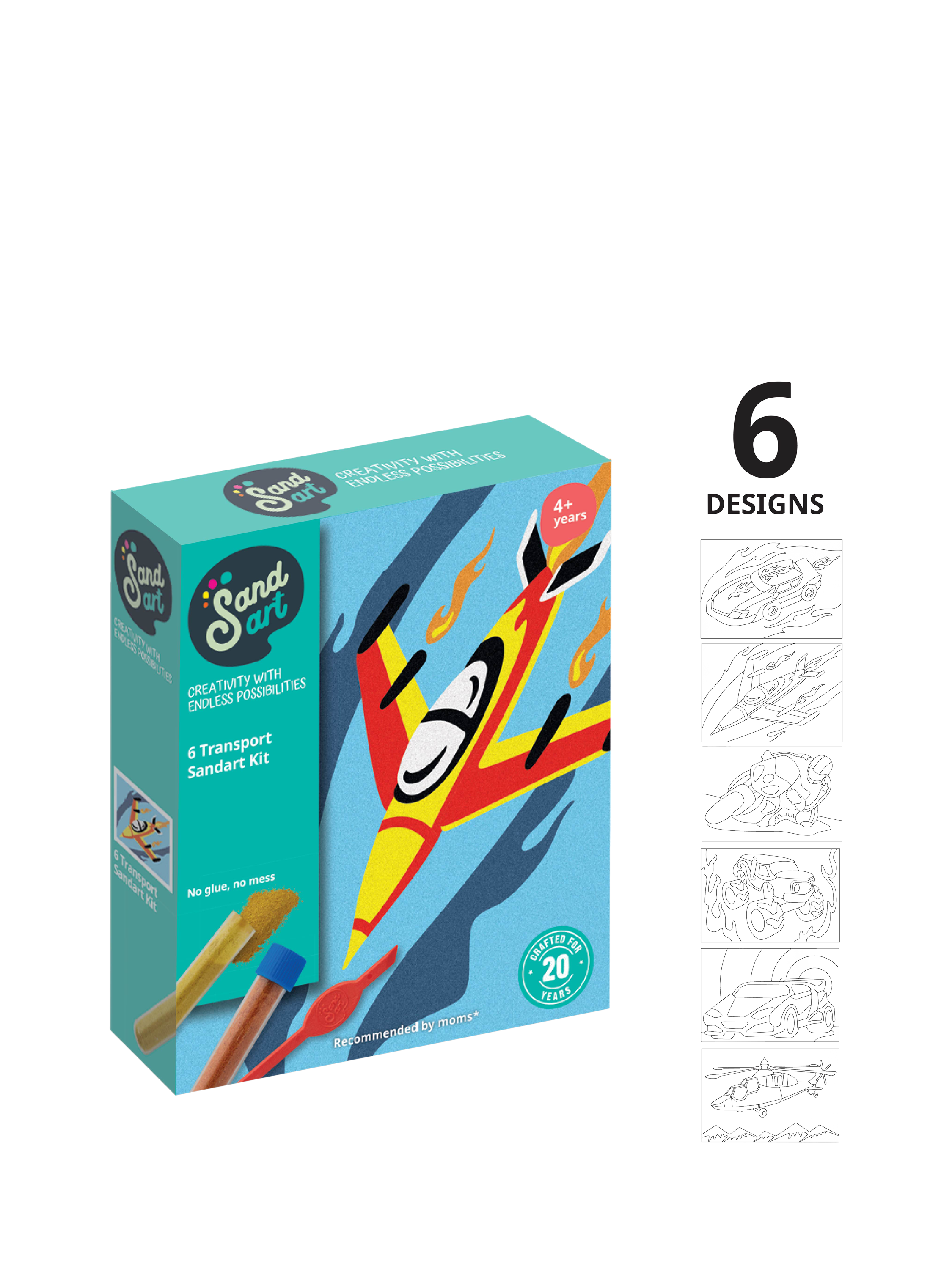 Get ready for a fun and mess-free crafting experience with the Sand Art 6 Transport Kit. Perfect for creative kids aged 4 and up, this engaging activity set combines art and play while helping develop fine motor skills and concentration.