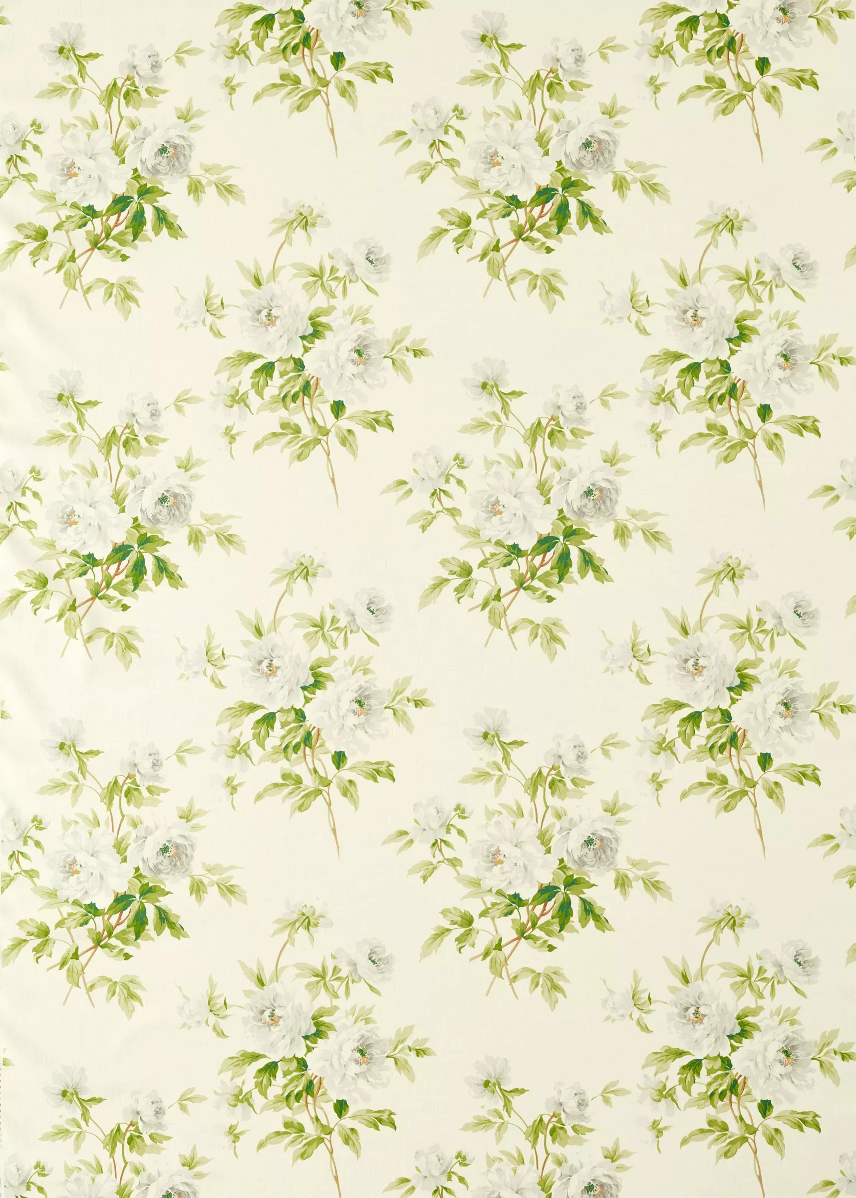 Loose bouquets of abundant peonies are displayed on this 100% cotton fabric - a faithful reproduction of a late 19th century French design, retaining the delicate transparency of the original. This graceful design brings the essence of the garden inside.