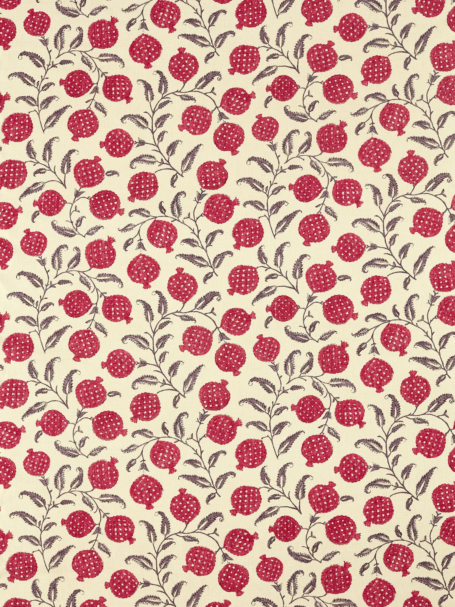 A symbol of life and meaning Pomegranate in Hindi, these stylised fruits and leaves display an organic, block printed look.